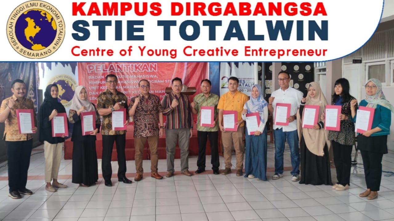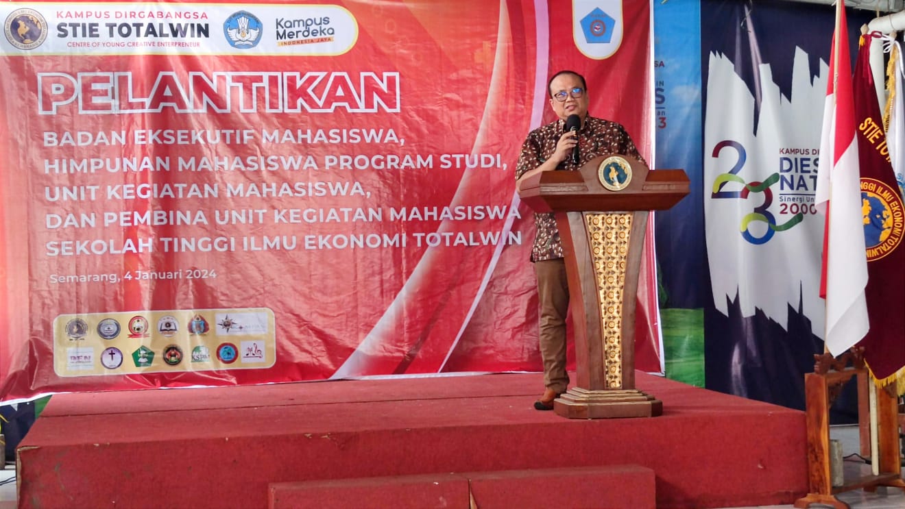 Semarang – Bertempat di Aula Kampus Dirgabangsa2 STIE Totalwin, dilaksakan pelantikan Badan Eksekutif Mahasiswa (BEM), Himpunan Mahasiswa Program Studi (HMPS), Unit Kegiatan Mahasiswa (UKM) dan Pembina Unit Kegiatan Mahasiswa Perode tahun 2024-2025 pada Kamis (04/01).