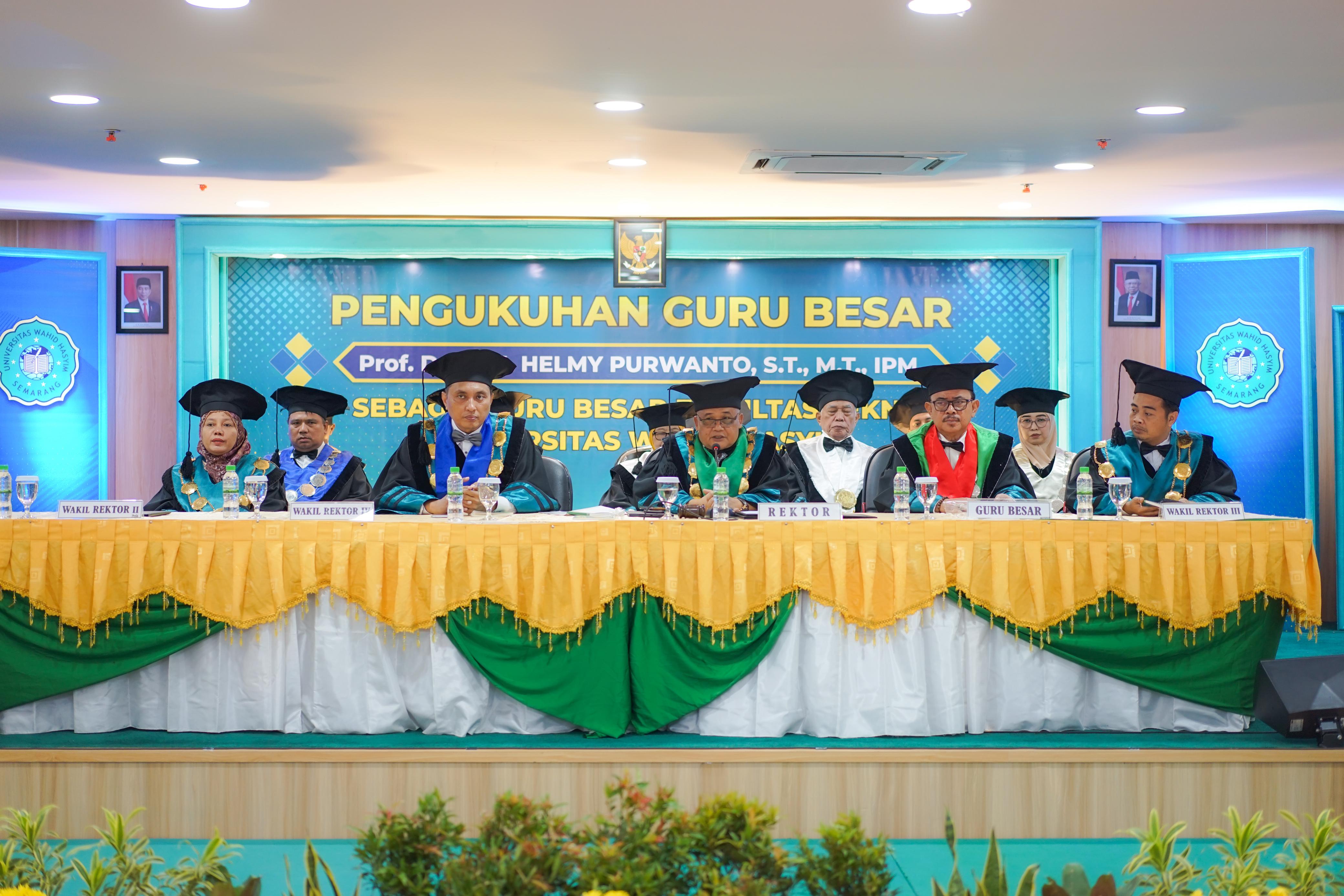 Semarang – Universitas Wahid Hasyim (Unwahas) Semarang menambah Guru Besar pada Fakultas Teknik yang telah dikukuhkan pada Sabtu (17/2) pagi. Kegiatan tersebut mengukuhkan Prof. Dr. Helmy Purwanto, ST., MT., IPM sebagai Guru Besar bidang Teknik Mesin. Ketua Umum Yayasan Wahid Hasyim Semarang (YWHS) yang dalam hal ini diwakili oleh Ketua I YWHS Prof. H. Abu Hapsin Umar, MA, Ph.D menyebut jika Prof. Helmy telah memberikan contoh bentuk spiritualisasi ilmu yang baik “maka sekali lagi apa yang telah dilakukan oleh Prof Helmy ini merupalan salah satu bentuk dari spiritualisasi ilmu-ilmu pengetahuan modern” ungkapnya.