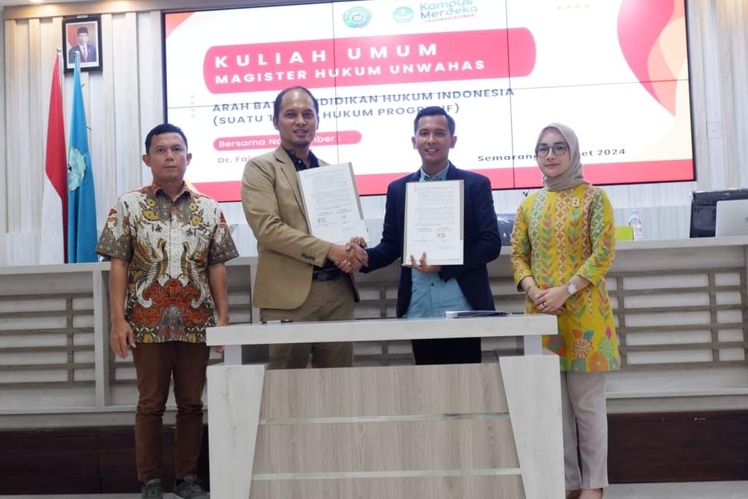 Pada hari Sabtu, tanggal 02 Maret 2024, telah dilaksanakan kuliah umum dengan tema Arah Baru Pendidikan Hukum Indonesia (Suatu telaah Hukum Progresif) dan orientasi keaswajaan menandai dimulainya perkuliahan awal perkuliahan Program Studi Magister Hukum Universitas Wahid Hasyim. Bertempat di ruang rapat lt 6 Gedung Dekanat kampus Universitas Wahid Hasyim jl. Menoreh Tengah X/ 22 Sampangan, Semarang. Setelah dilakukan Focus Group Discussion (FGD) dan review kurikulum Digelarnya acara ini bertujuan untuk memulai rangkaian aktifitas kegiatan perkuliahan di semester genap 2023/2024.