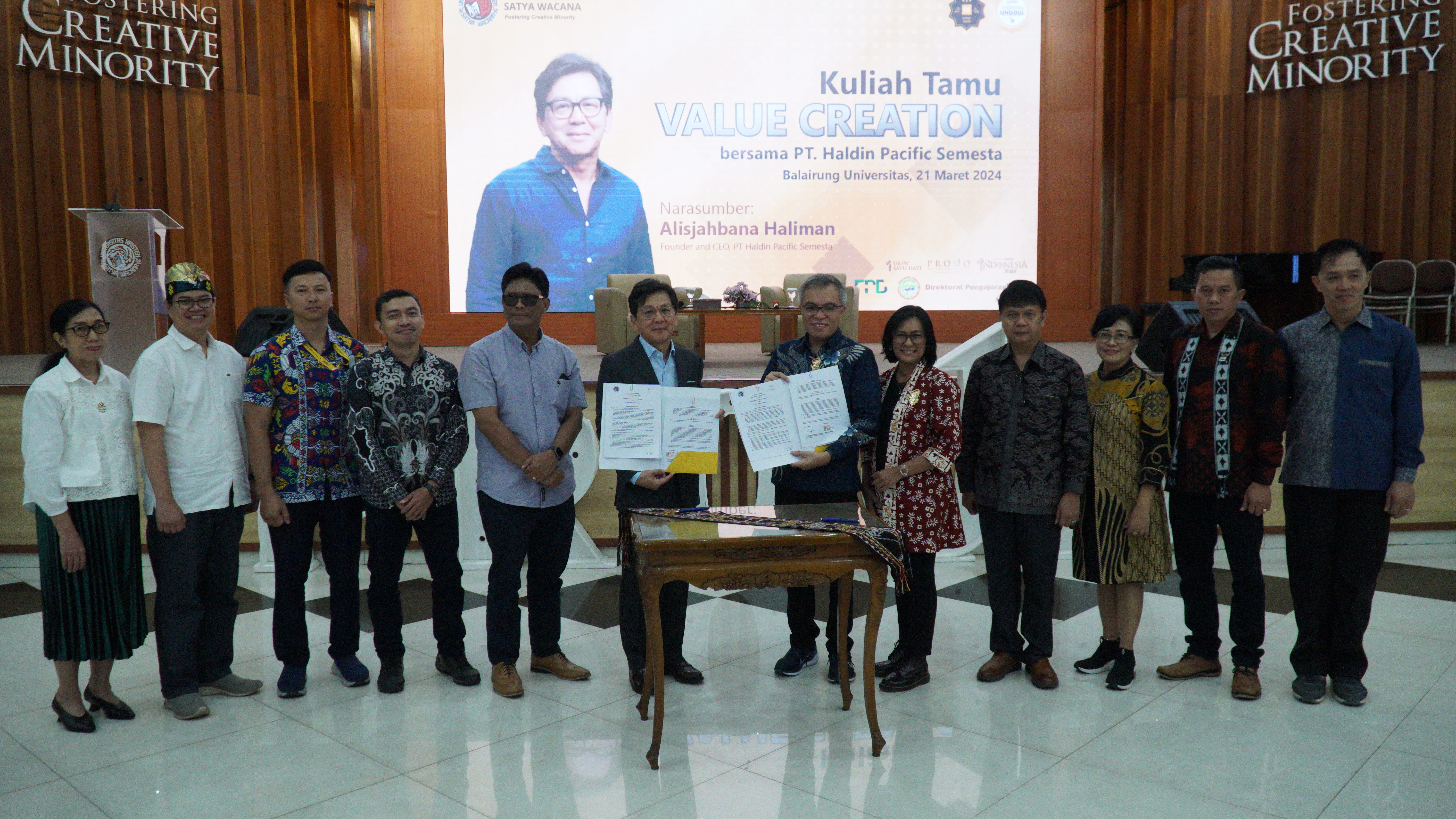 Salatiga – Mengawali perkuliahan awal semester genap tahun akademik 2024, Universitas Kristen Satya Wacana (UKSW) menggelar Kuliah Tamu dengan menghadirkan dosen praktisi, akhir pekan lalu di Balairung Universitas. Menghadirkan Founder dan CEO dari PT. Haldin Pacific Semesta Alisjahbana Haliman sebagai narasumber tunggal, kuliah tamu kali ini mengangkat tema “Value Creation”.