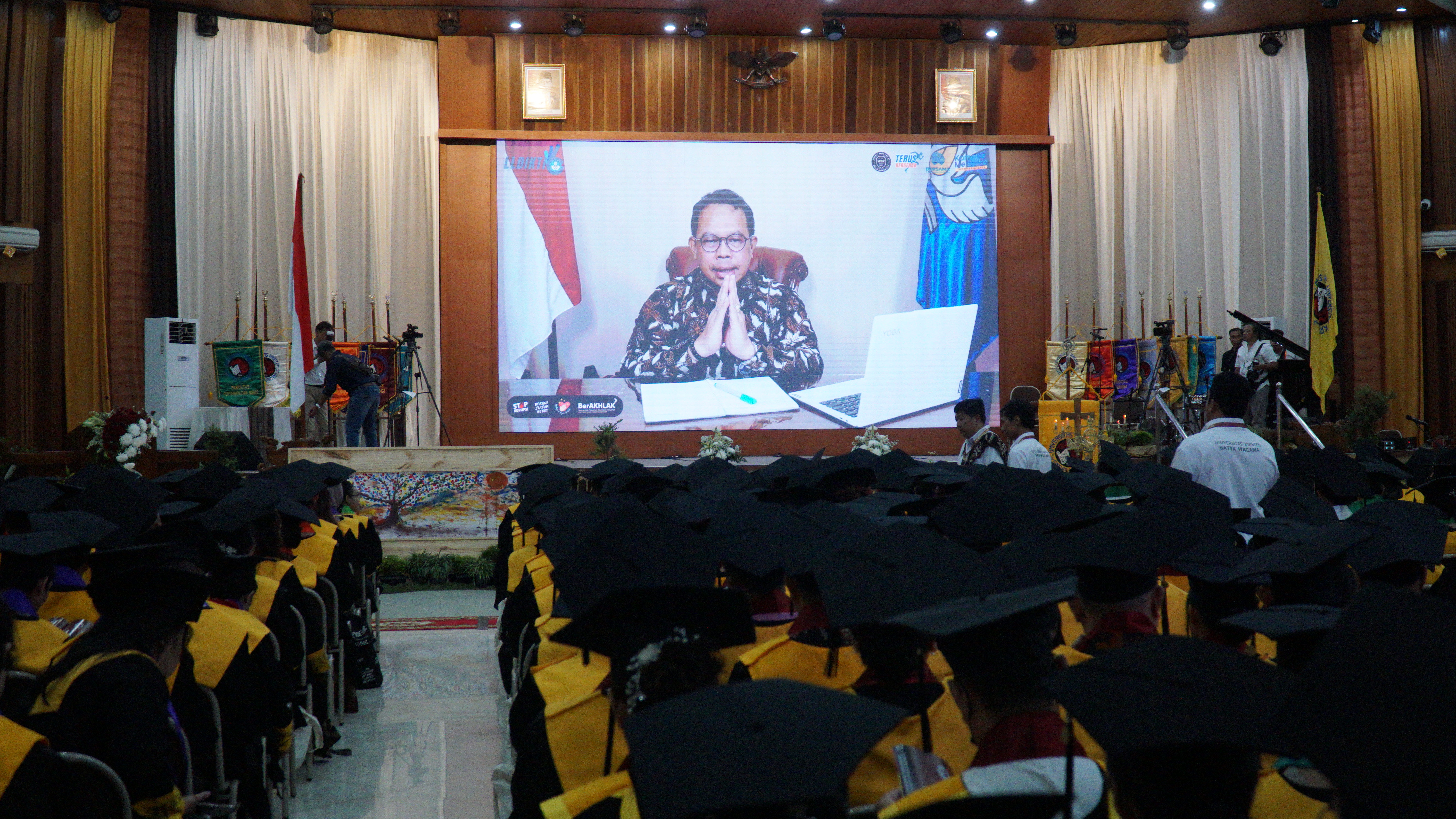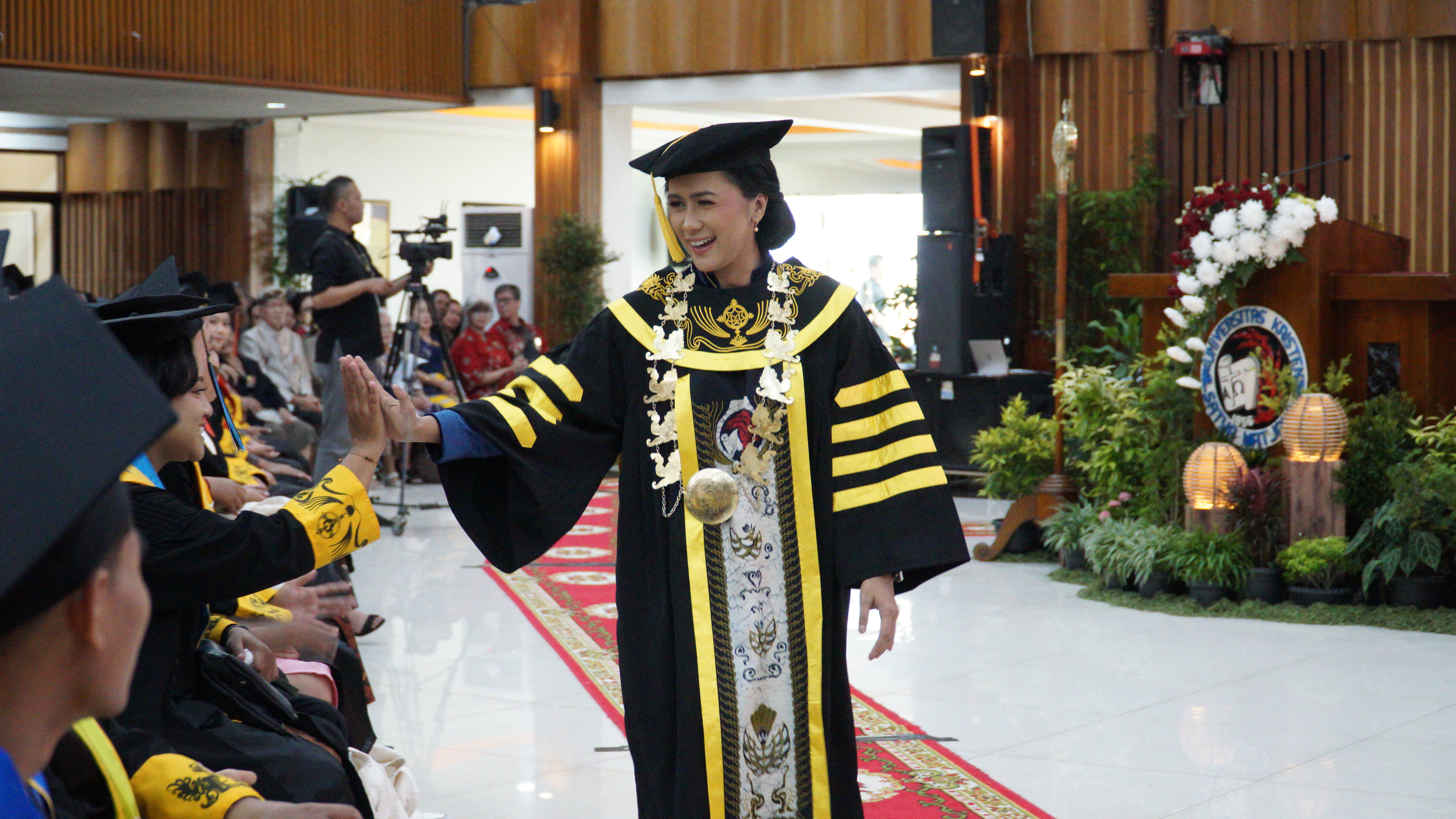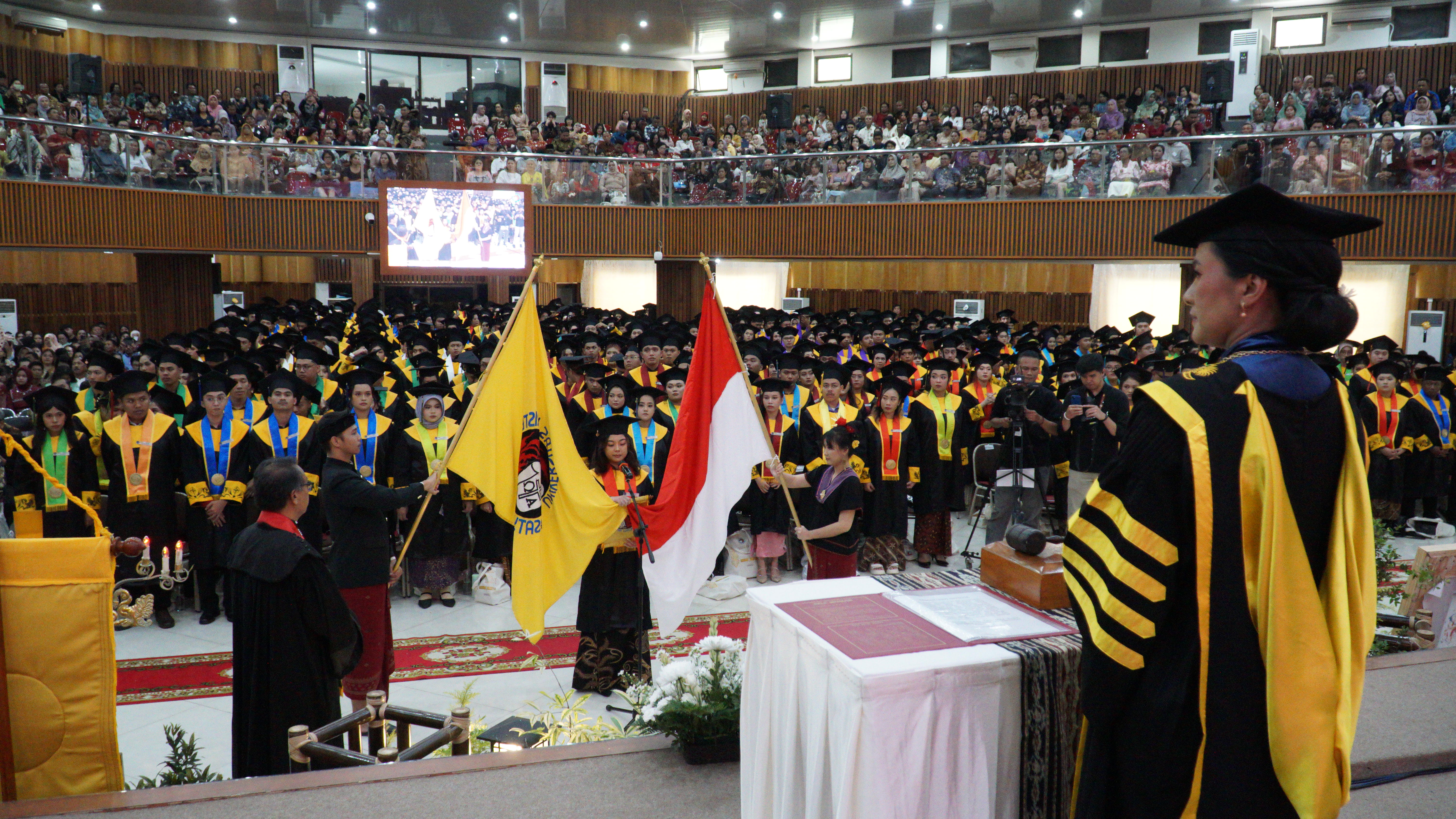 Sementara itu, Perwakilan Wisudawan Allessandro Yosafat Massie, mengungkapkan rasa syukurnya kepada seluruh pihak yang telah mendukung proses belajarnya. “Jangan pernah menyerah pada keadaan. Jangan takut pada kegagalan. Sekalipun hati dan tulang-tulangmu remuk seperti sedang dipatahkan. Bangkitlah dan raih kemenangan,” kata peraih IPT dari Program Studi Pendidikan Pancasila dan Kewarganegaraan (PPKn) Fakultas Keguruan dan Ilmu Pendidikan (FKIP) tersebut.