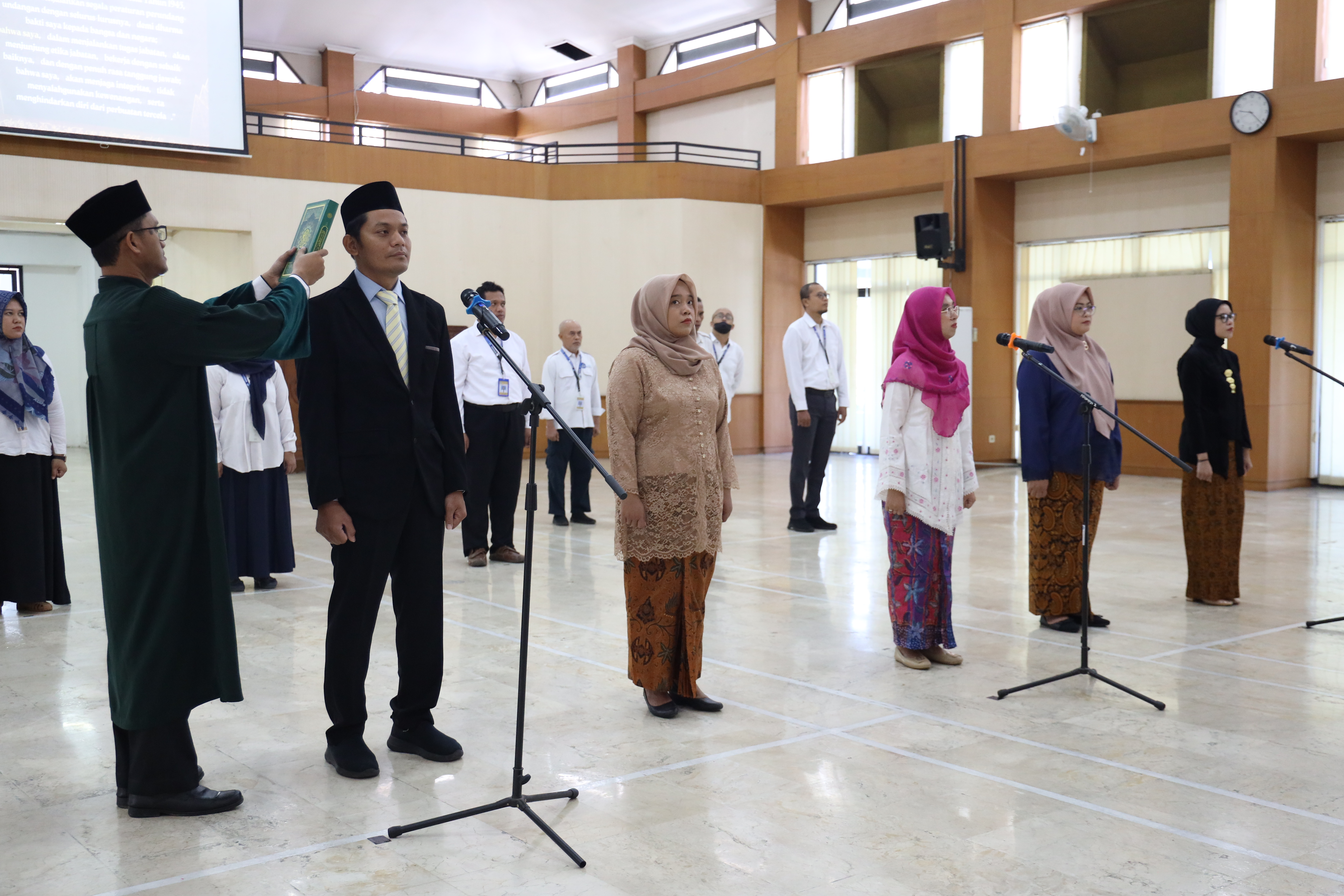 Bertempat di Gedung B Kantor LLDIKTI Wilayah VI, hari ini (12/7/2024) Kepala LLDIKTI Wilayah VI Dr. Bhimo Widyo Andoko, S.H., M.H., memimpin prosesi Pelantikan dan Pengambilan Sumpah Aparatur Sipil Negara LLDIKTI Wilayah VI. Pegawai yang dilantik terdiri dari 3 (tiga) Pranata Komputer Ahli Pertama dan 2 (dua) pegawai pemerintah dengan perjanjian kerja. Adapun Pranata Komputer Ahli Pertama yang dilantik adalah Agus Supriyanto S.Kom., Ramadhina Febry Darmanto, S.Kom., dan Henny Dyah Wulandari, S.Kom. Sedangkan Pegawai Pemerintah dengan Perjanjian Kerja yang dilantik adalah Dwi Setiyowati, A.Md. dan G. W. Arumsasi, A.Md.