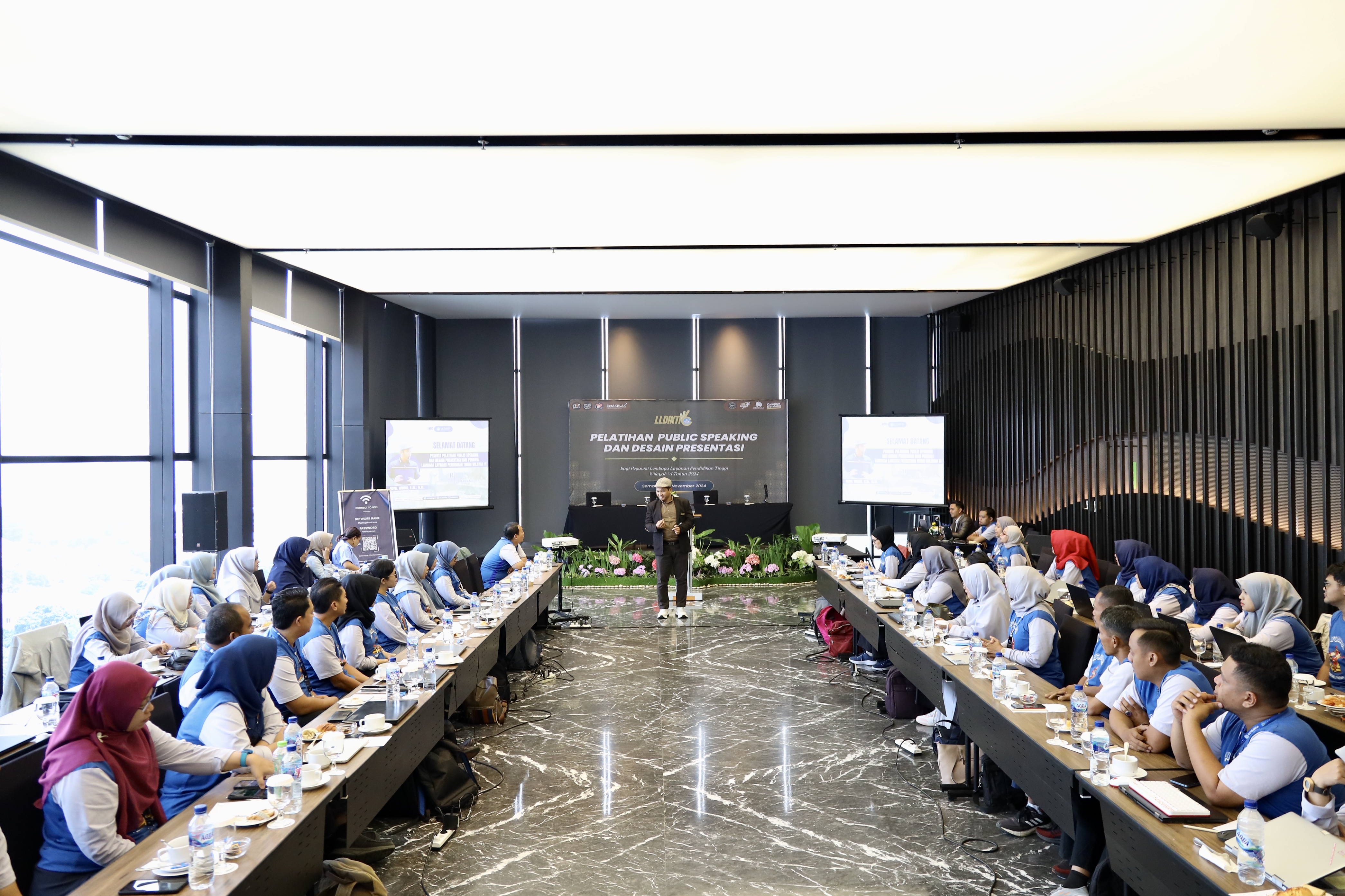 Semarang – Dalam upaya meningkatkan kualitas pelayanan, LLDIKTI Wilayah VI menyelenggarakan Pelatihan Public Speaking dan Desain Presentasi dengan tema “Ayo Bicara dengan Hati dan Empati”. Acara yang berlangsung di Hotel Aruss, Semarang ini diikuti oleh seluruh pegawai LLDIKTI Wilayah VI. LLDIKTI 6 kali ini menggandeng NTC (Novelty Traincing and Consulting) dengan Nofel Windo, S.Si., M.M. sebagai mentor serta narasumber utama yang telah 18 tahun lebih menyelami dunia public speaking.