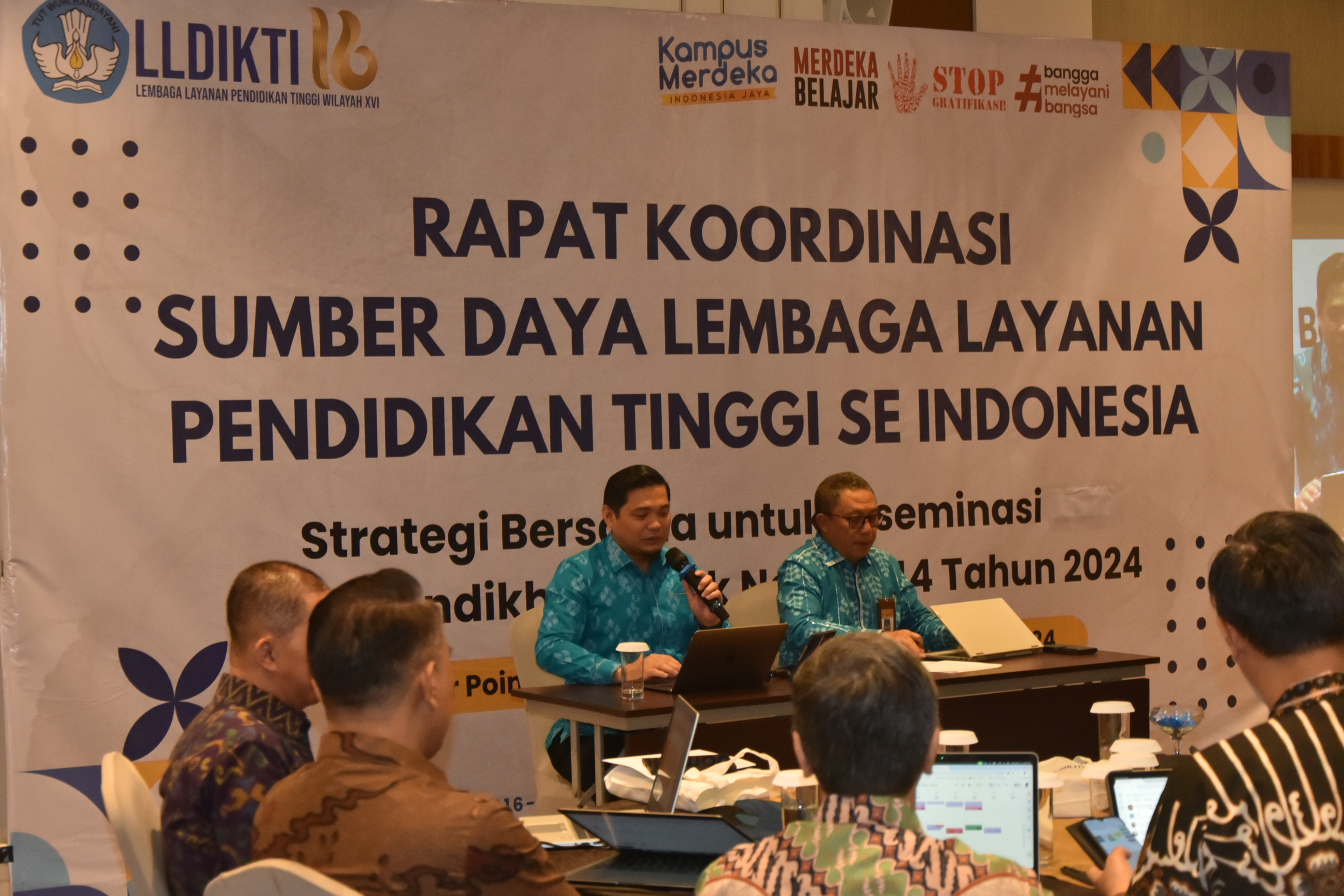 Manado – Rapat Koordinasi Kepala LLDIKTI Se-Indonesia kembali digelar. Perhelatan kali ini bertempat di Kota Manado, Sulawesi Utara (10-12/11/24) selaku tuan rumah penyelenggara oleh LLDIKTI Wilayah XVI yang khusus membahas tentang Permendikbudristek Nomor 44 Tahun 2024 tentang Profesi, Karier dan Penghasilan Dosen serta Implementasinya di LLDIKTI. Kepala LLDIKTI Wilayah VI, Dr. Bhimo Widyo Andoko, S.H., M.H., bersama seluruh Kepala LLDIKTI Wilayah I s/d XVII dan Bagian Sumber Daya, berdiskusi menyusun strategi bersama dalam rangka diseminasi dan implementasi permendikbudristek Nomor 44 tahun 2024.