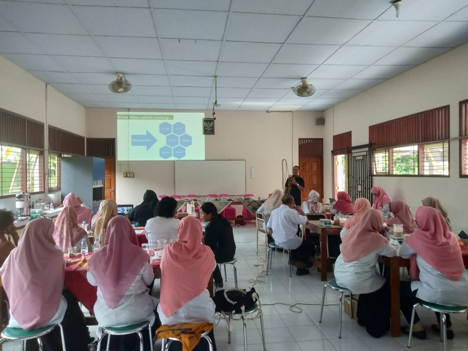“Penerapan prinsip Kimia Hijau dalam pembelajaran tidak hanya mendukung pengurangan dampak negatif terhadap lingkungan, tetapi juga menjadi bagian penting dalam membangun kesadaran ekologi siswa sejak dini,” ungkap Dr. Antonius Prihanto, S.Pd., M.T saat menyampaikan materi.