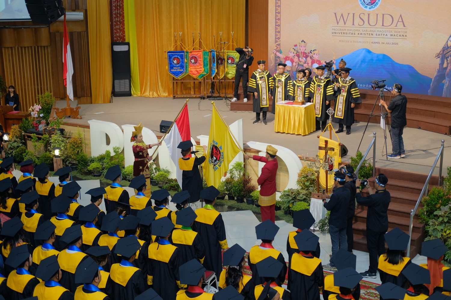 Bersamaan dengan Hari Ulang Tahun (HUT) ke 1.275 Kota Salatiga, Universitas Kristen Satya Wacana (UKSW) langsungkan prosesi khidmat Upacara Wisuda Periode III Tahun 2025 di Balairung Universitas pada Kamis (24/07/2025).