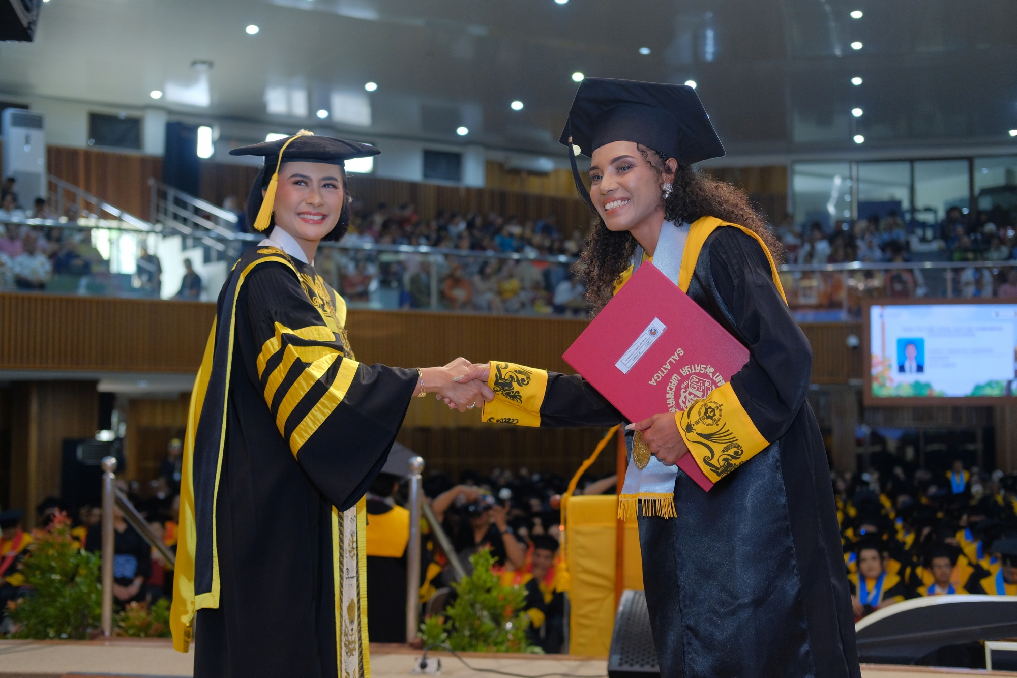 “Hari ini adalah momentum yang istimewa karena bertepatan dengan Hari Jadi Kota Salatiga, yang mana Salatiga merupakan kota tertua kedua di Indonesia setelah kota Palembang. Maka di momentum bersejarah ini, kami dengan bangga mengantar teman-teman semuanya untuk lulus, baik di jenjang Diploma, Sarjana, Magister, maupun Doktor,” ungkap Rektor Intiyas.