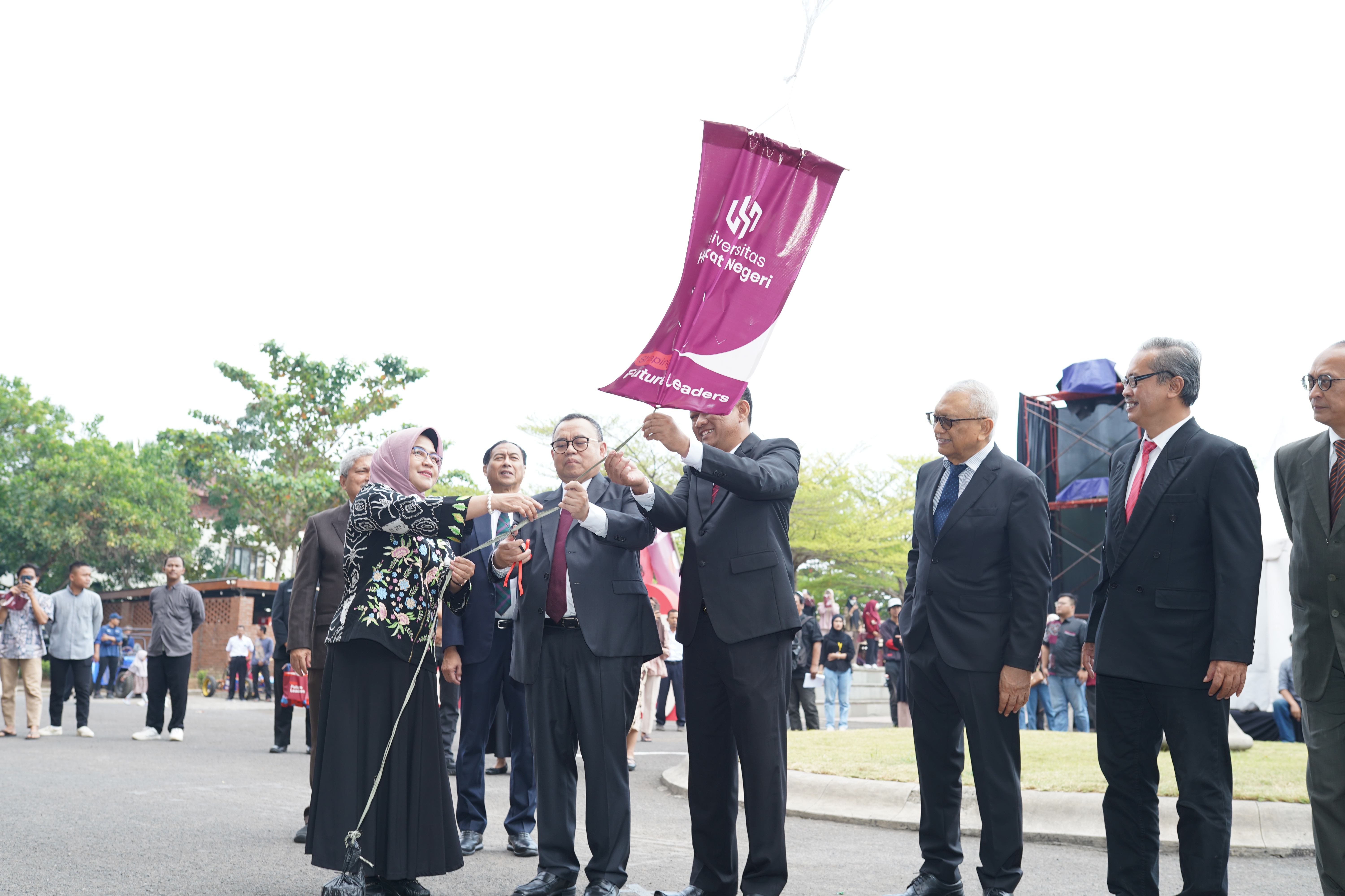 Acara peluncuran Harkat Negeri semakin semarak dengan prosesi pelepasan balon ke udara sebagai simbol lahirnya universitas baru yang siap mengarungi dunia pendidikan tinggi dengan semangat dan harapan baru. Sorak-sorai mahasiswa, dosen, dan tamu undangan mengiringi momen tersebut, menciptakan suasana penuh optimisme.