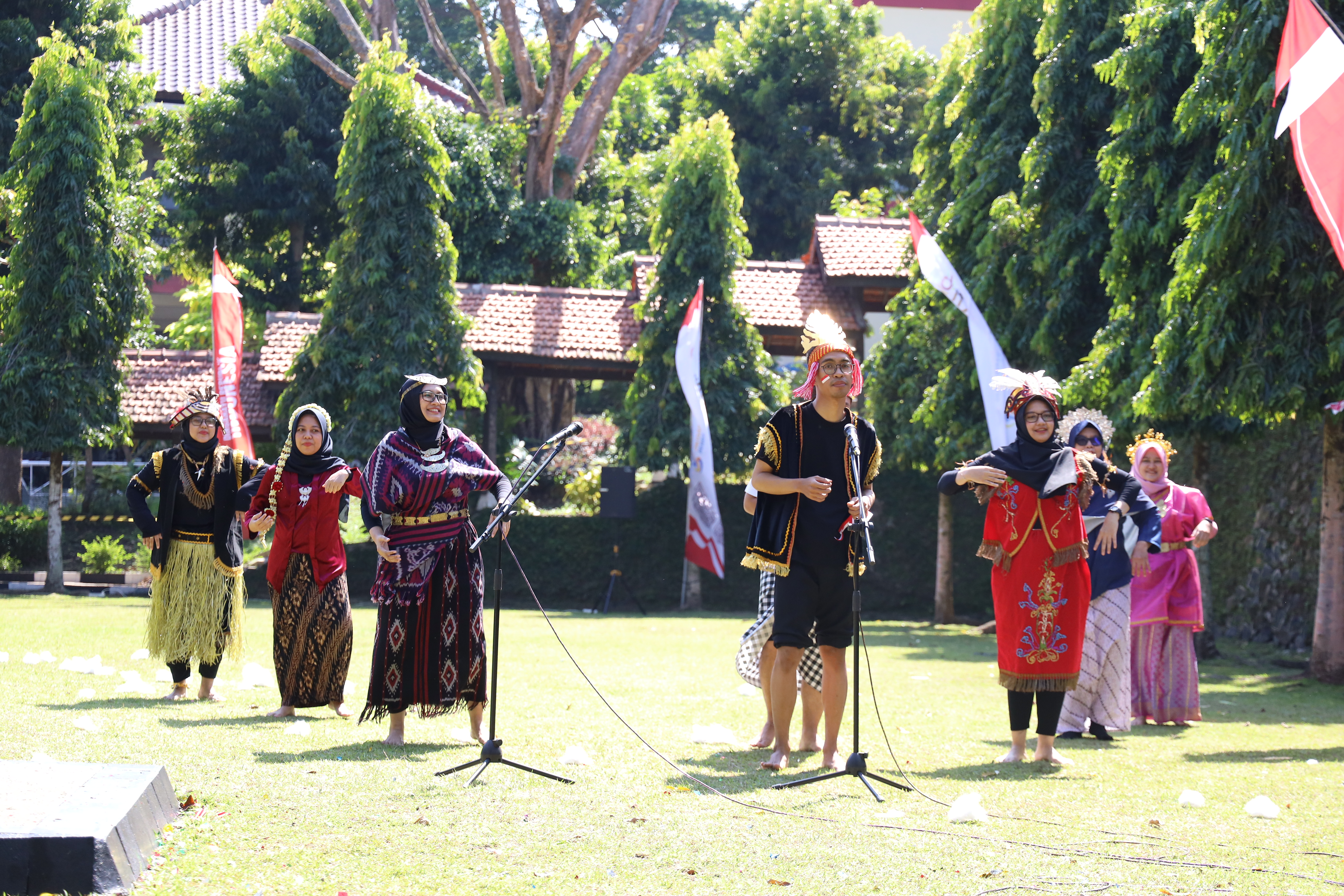 Seluruh peserta pun tampil berbeda dari biasanya dengan busana adat daerah, mencerminkan indahnya keberagaman budaya Indonesia. Dalam kesempatan tersebut juga dilaksanakan penganugerahan tanda kehormatan Satyalancana Karya Satya kepada pegawai yang telah mengabdi dengan penuh dedikasi, sebagai penghargaan atas loyalitas, tanggung jawab, dan kontribusi nyata bagi dunia pendidikan tinggi.