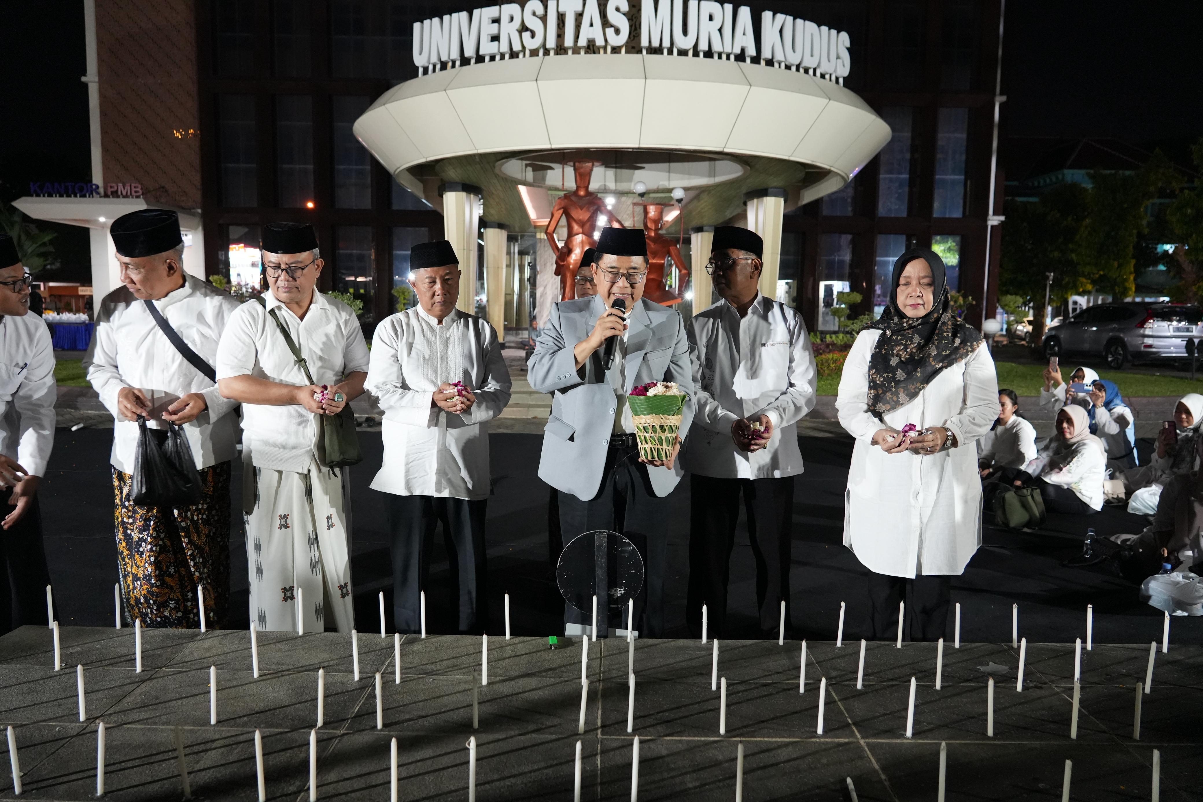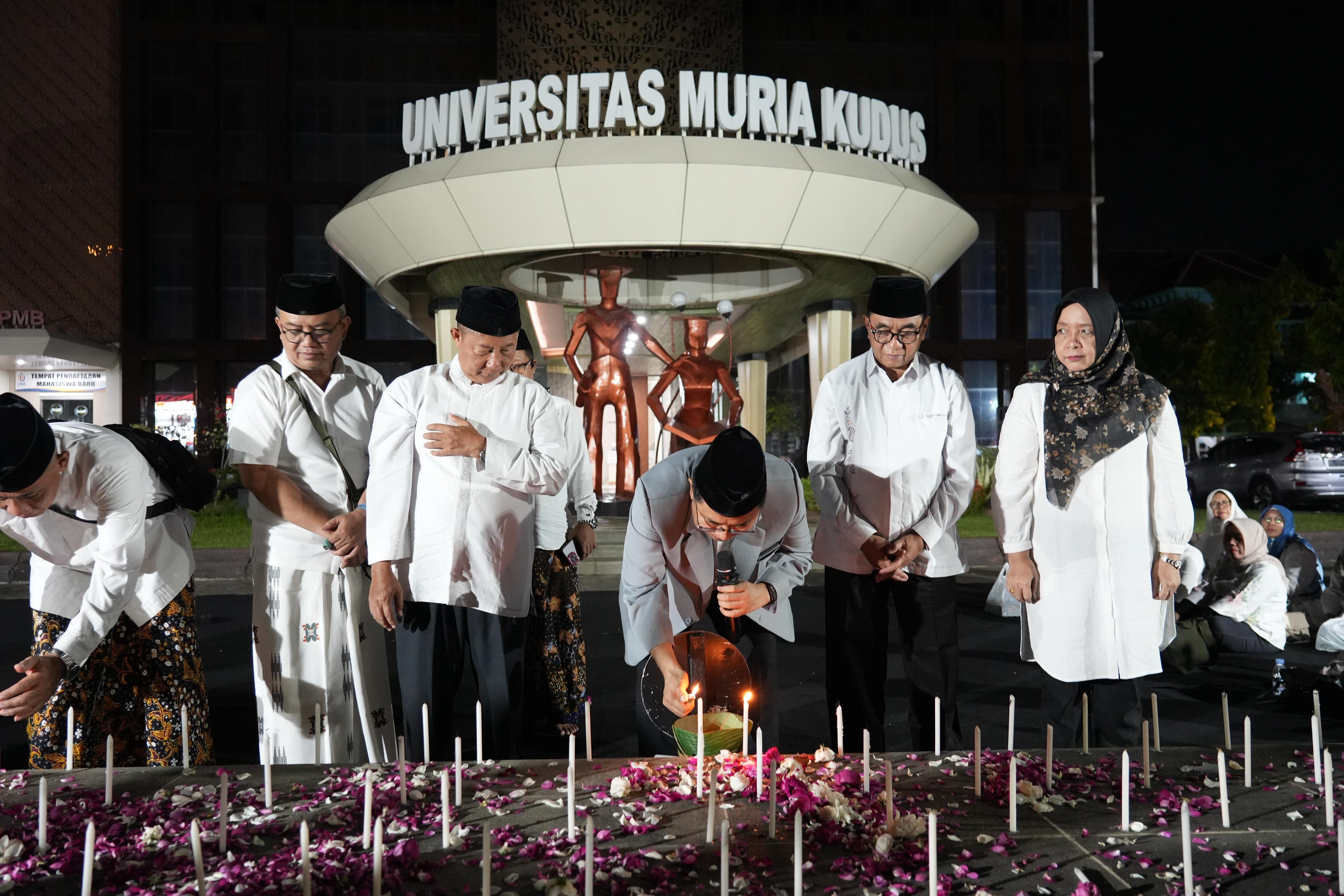 Acara ini dipimpin oleh jajaran pimpinan kampus bersama sivitas akademika, dilanjutkan dengan tabur bunga dan penyalaan lilin sebagai simbol empati dan solidaritas.Dalam kesempatan itu, Rektor UMK, Prof. Dr. Ir. Darsono, M.Si., membacakan Pernyataan Keprihatinan dan Empati yang menegaskan komitmen UMK menjaga marwah demokrasi dan nilai kemanusiaan.