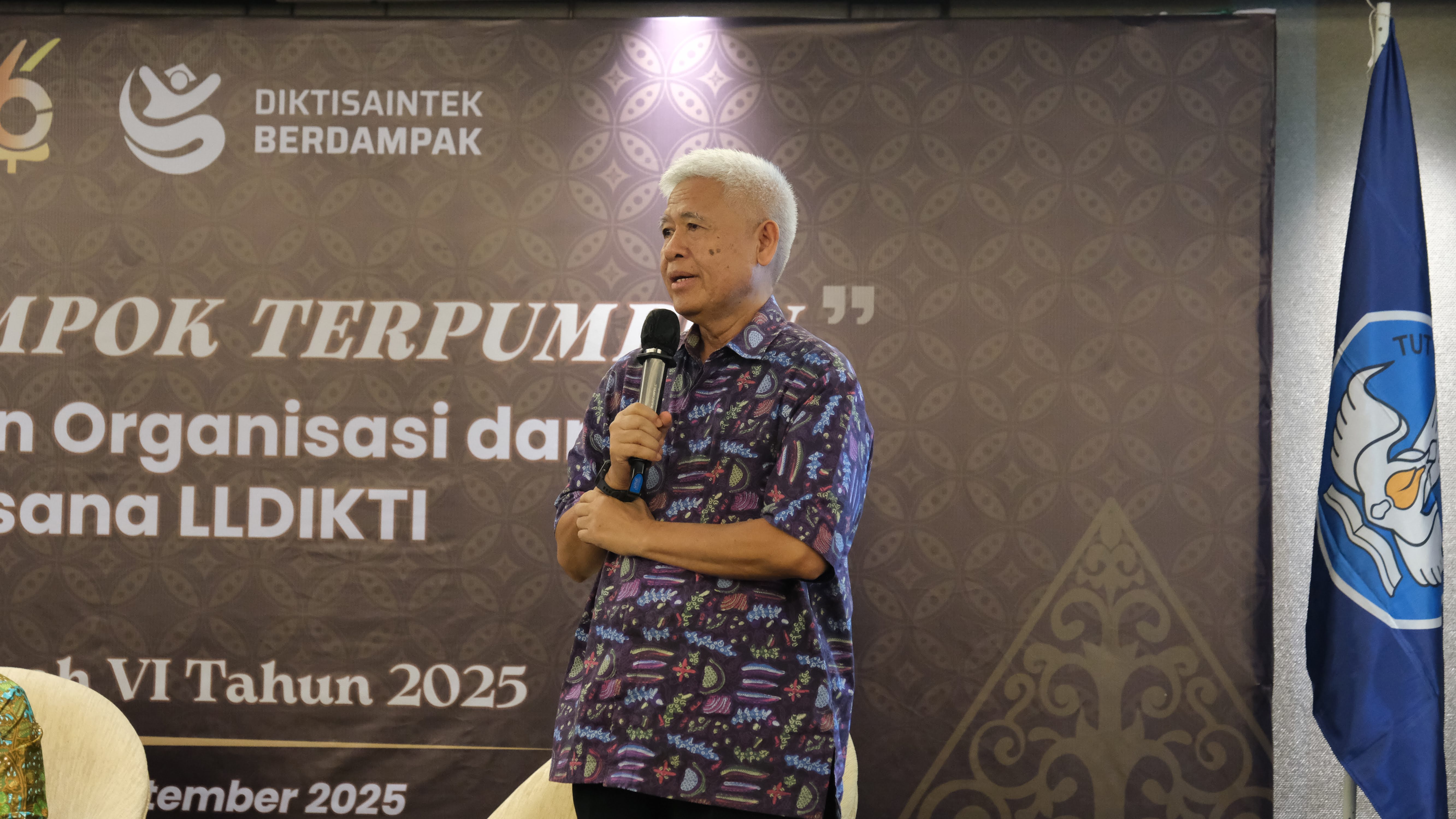 Diskusi menampilkan pemaparan Dr. M. Samsuri, S.Pd., M.T., IPU (Sekretaris Ditjen Sains dan Teknologi) tentang Design Program Dirjen Saintek. Ia menekankan tiga kata kunci: Scientific Culture, Scientific Temper, dan Scientific Solution. Program prioritas diarahkan pada penguatan literasi sains di masyarakat, pembangunan ekosistem riset yang berdampak, hingga pengembangan Sekolah Unggul Garuda dan program beasiswa Garuda untuk mencetak talenta saintis dunia. Dr. Samsuri juga menegaskan peran LLDIKTI sebagai mitra strategis dalam memperkuat jejaring, literasi sains, dan pendampingan perguruan tinggi.