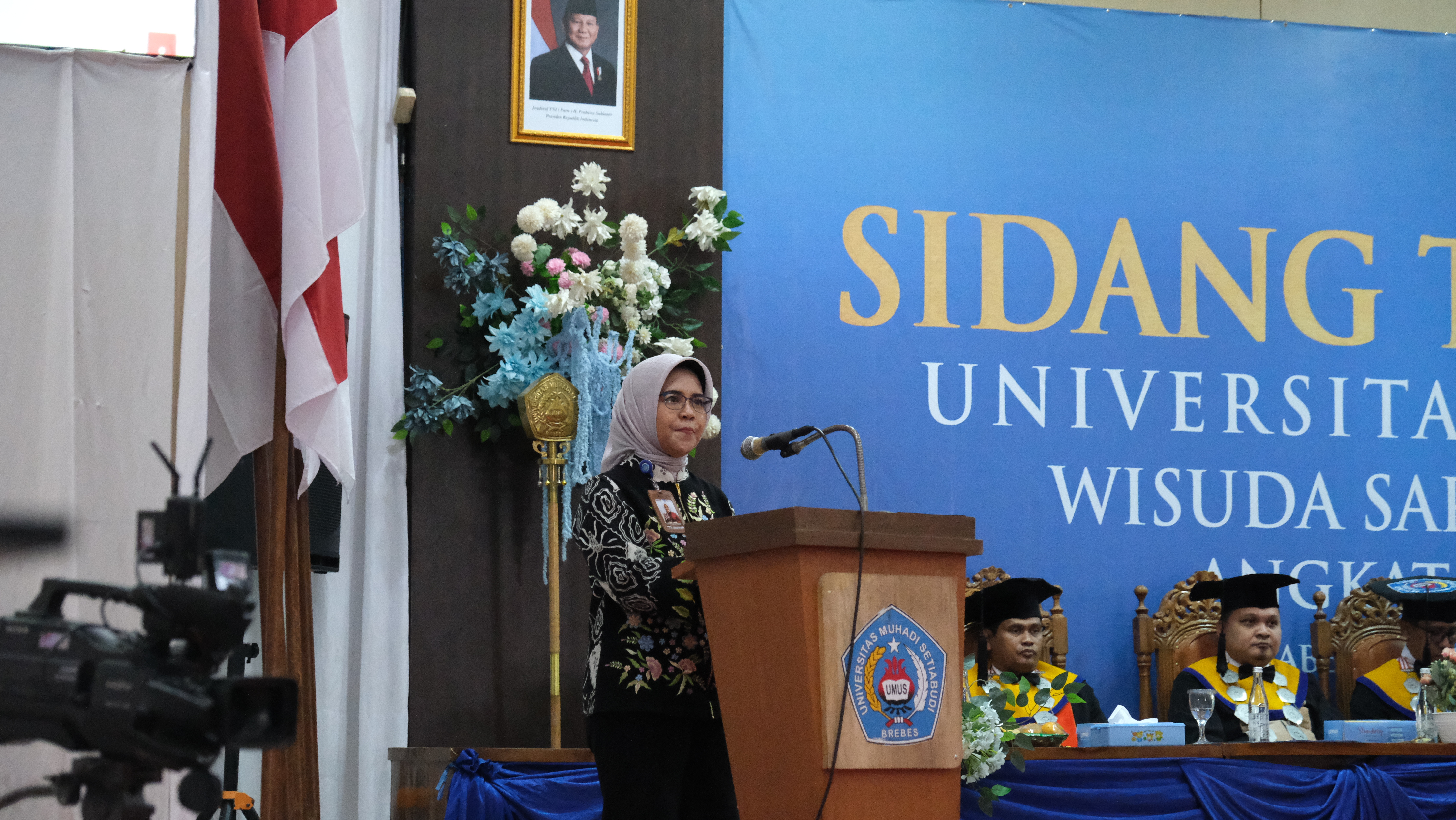 Lebih lanjut, beliau juga memberikan pesan-pesan inspiratif yang menggugah semangat para wisudawan untuk terus berkontribusi bagi bangsa dan negara. “Teruslah belajar, berinovasi, dan berkontribusi. Masa depan Indonesia ada di tangan Anda. Bangunlah mimpi besar, namun tetap pijakkan kaki di bumi Indonesia. Kesuksesan sejati bukan hanya untuk diri sendiri, tetapi juga untuk bangsa. Jadilah lulusan yang membawa cahaya perubahan,” pesan Prof. Aisyah dalam orasinya. Wisuda Ke-9 Universitas Muhadi Setiabudi ini menjadi momentum penting dalam melahirkan sumber daya manusia yang berdaya saing global, inovatif, dan memiliki semangat pengabdian tinggi untuk bangsa Indonesia. (Berita dan Foto: Humas LLDIKTI Wilayah VI)