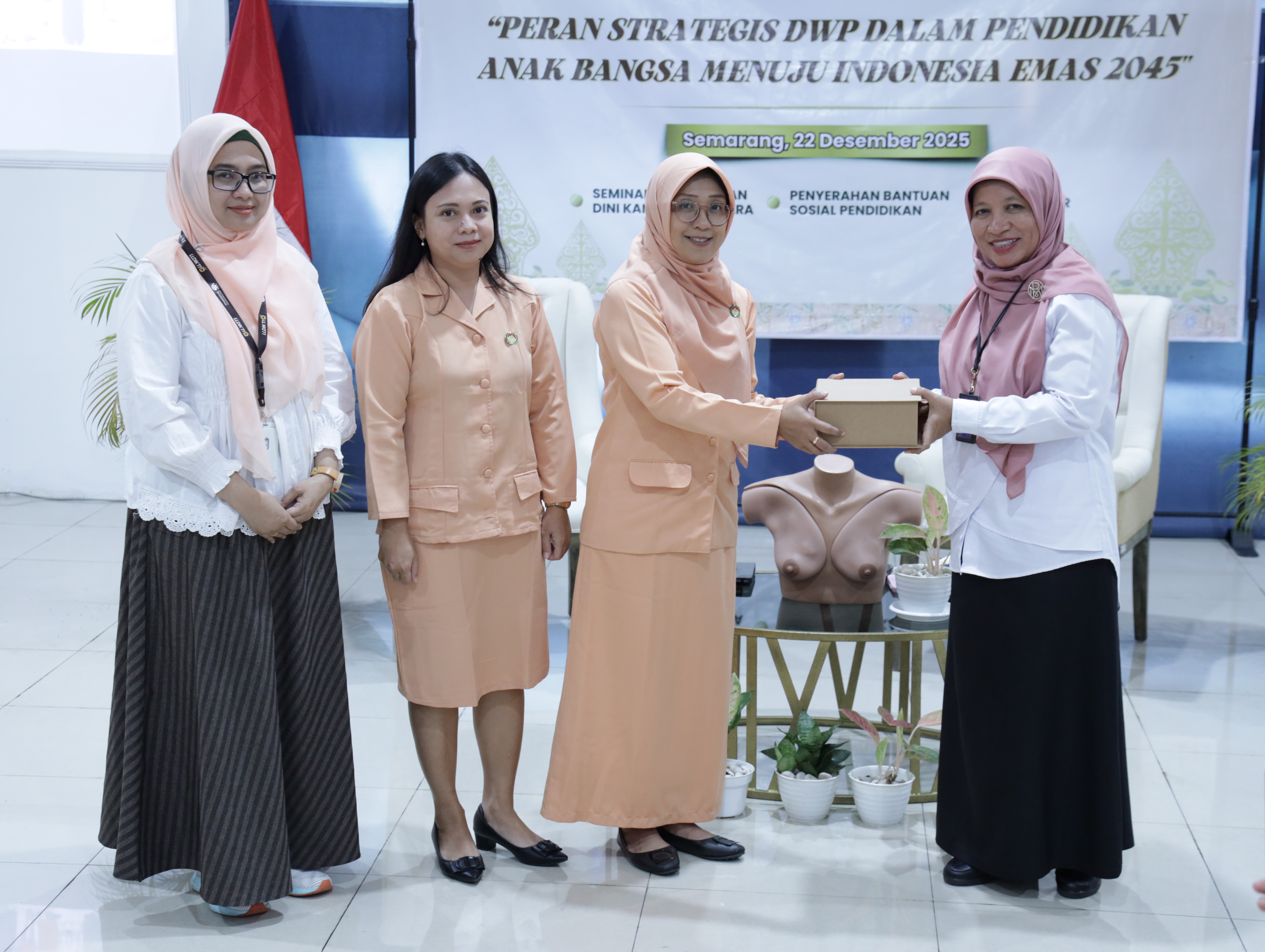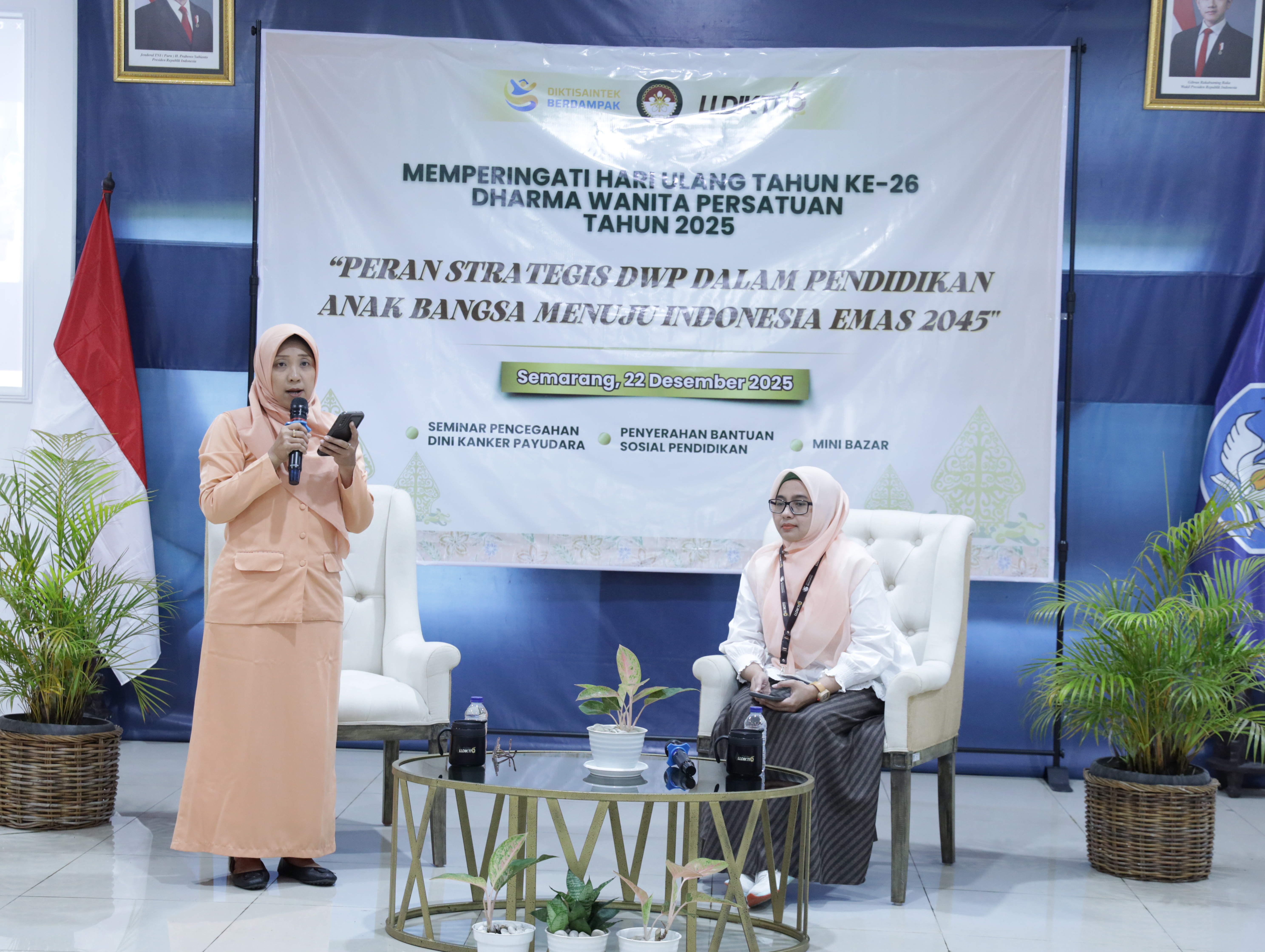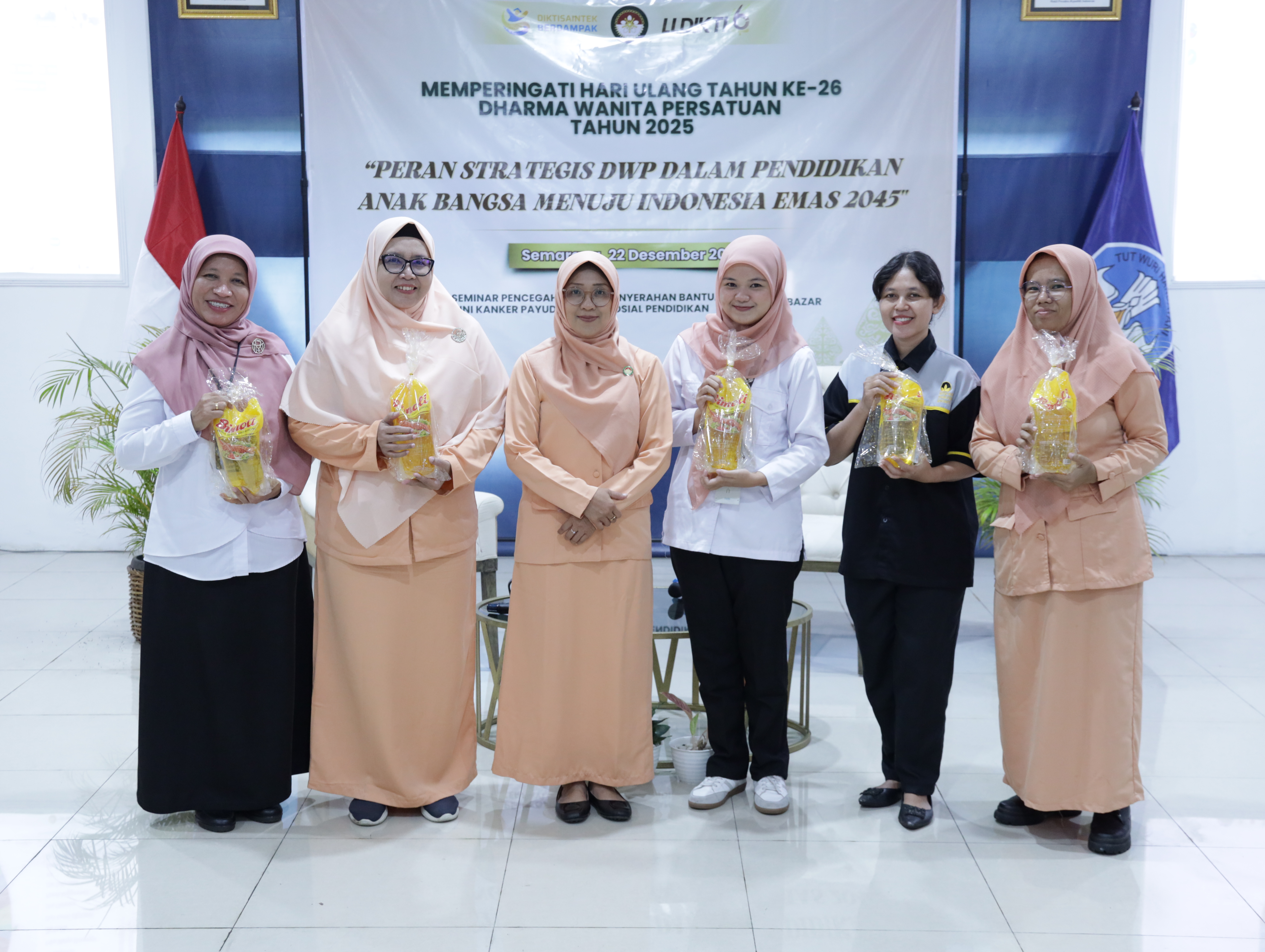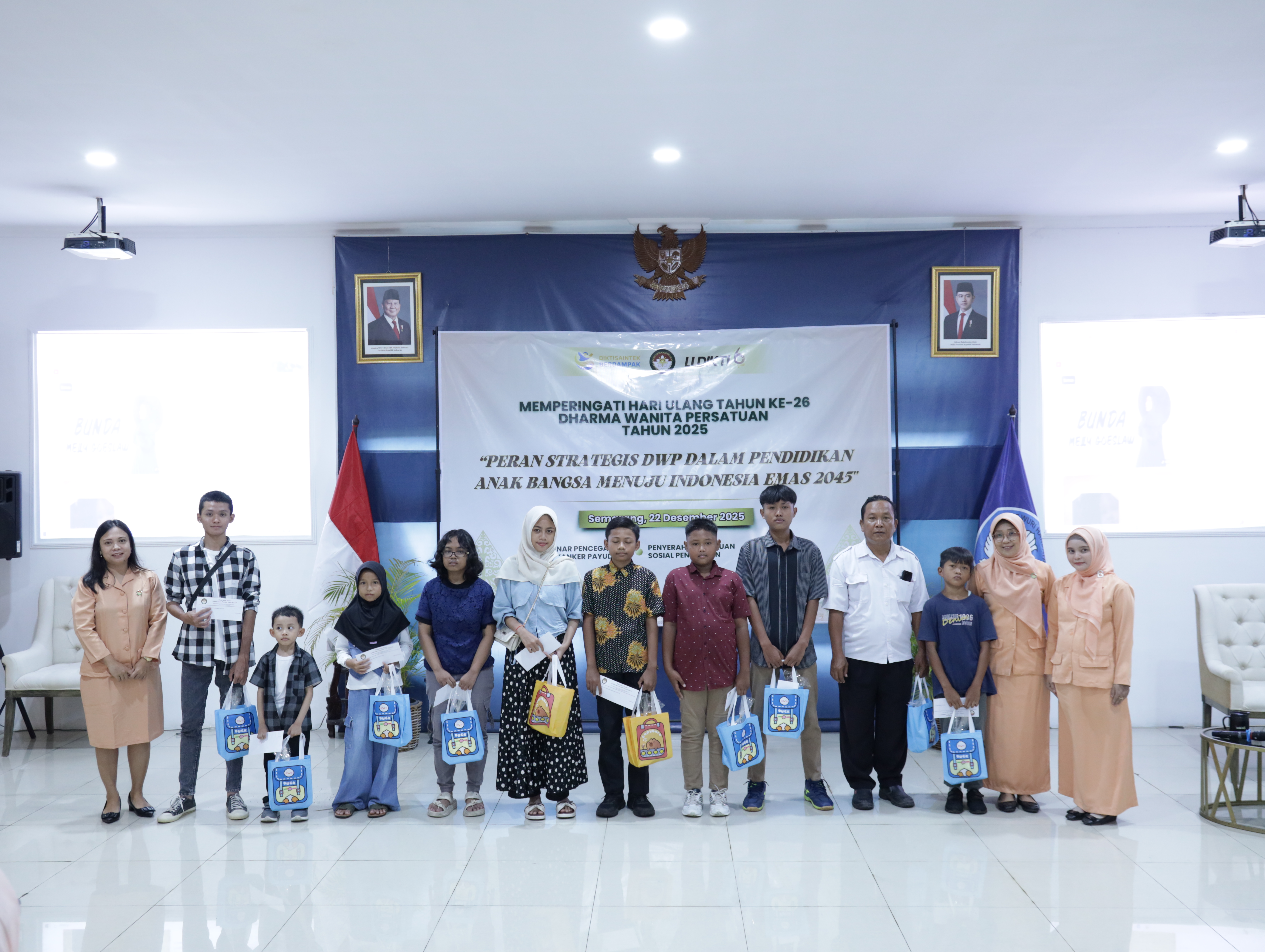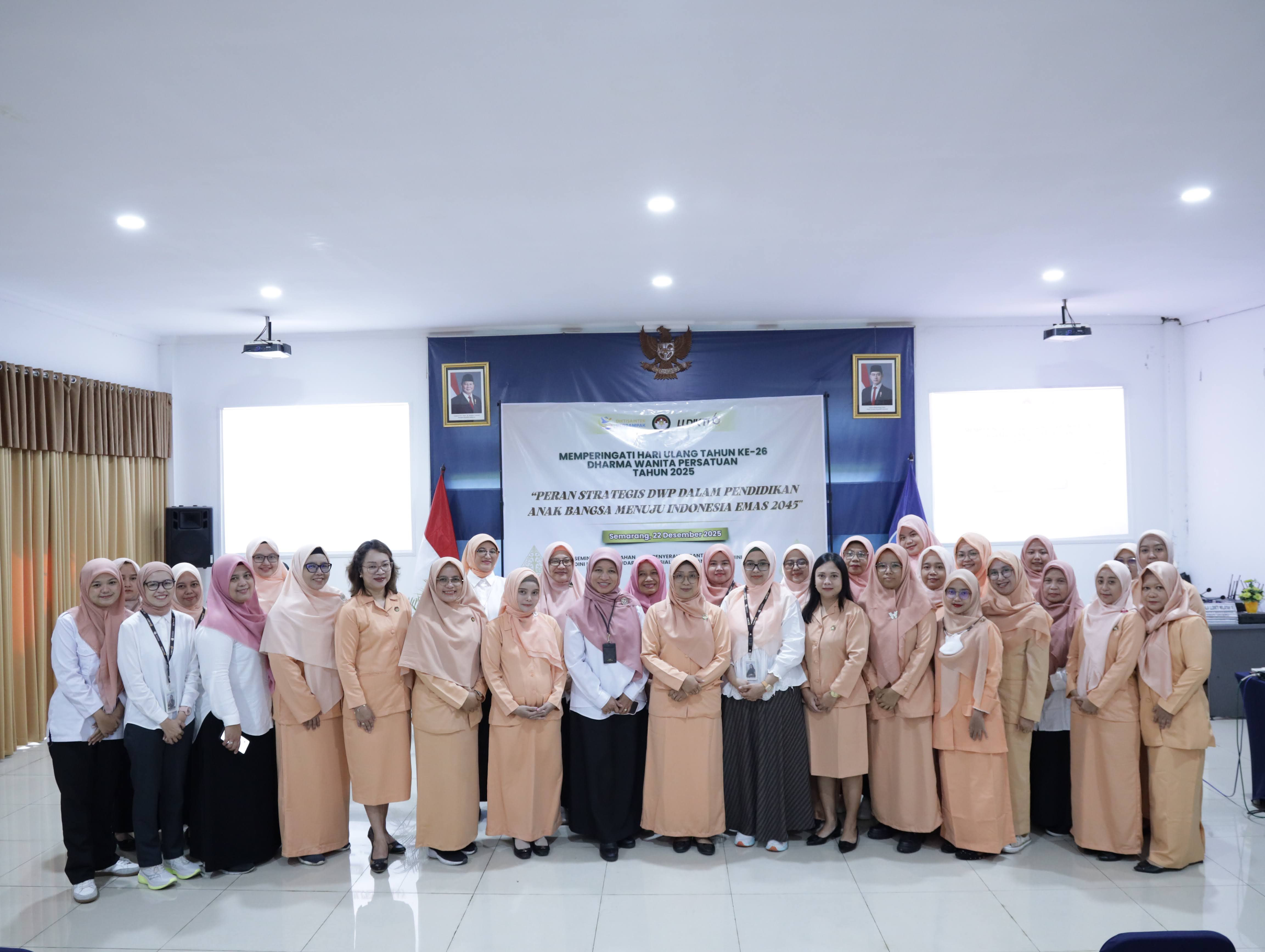 Semarang, 22 Desember 2025 — Dharma Wanita Persatuan (DWP) LLDIKTI Wilayah VI memperingati Hari Ulang Tahun Dharma Wanita Persatuan ke-26 Tahun 2025 yang bertepatan dengan Hari Ibu melalui rangkaian kegiatan edukatif dan sosial. Kegiatan ini mengusung tema “Peran Strategis DWP dalam Pendidikan Anak Bangsa Menuju Indonesia Emas 2045” dan diselenggarakan di lingkungan Kantor LLDIKTI Wilayah VI.