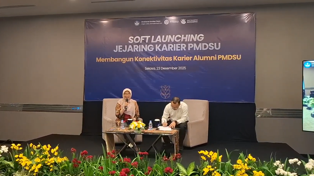 Semarang, 23 Desember 2025 — Direktorat Jenderal Pendidikan Tinggi, Kementerian Pendidikan Tinggi, Sains, dan Teknologi (Kemendiktisaintek) secara resmi melaksanakan Soft Launching Jejaring Karier PMDSU, sebuah platform strategis yang dirancang untuk memperkuat ekosistem talenta doktor muda nasional secara luring di Semarang pada Senin (22/12). Acara yang diikuti secara daring oleh pimpinan Perguruan Tinggi Negeri Berbadan Hukum (PTNBH), LLDIKTI, promotor, alumni, serta mahasiswa penerima Program Pendidikan Magister menuju Doktor untuk Sarjana Unggul (PMDSU) ini menjadi langkah awal implementasi kebijakan fasilitatif yang menghubungkan lulusan PMDSU dengan perguruan tinggi, lembaga riset, dan pemangku kepentingan lainnya.