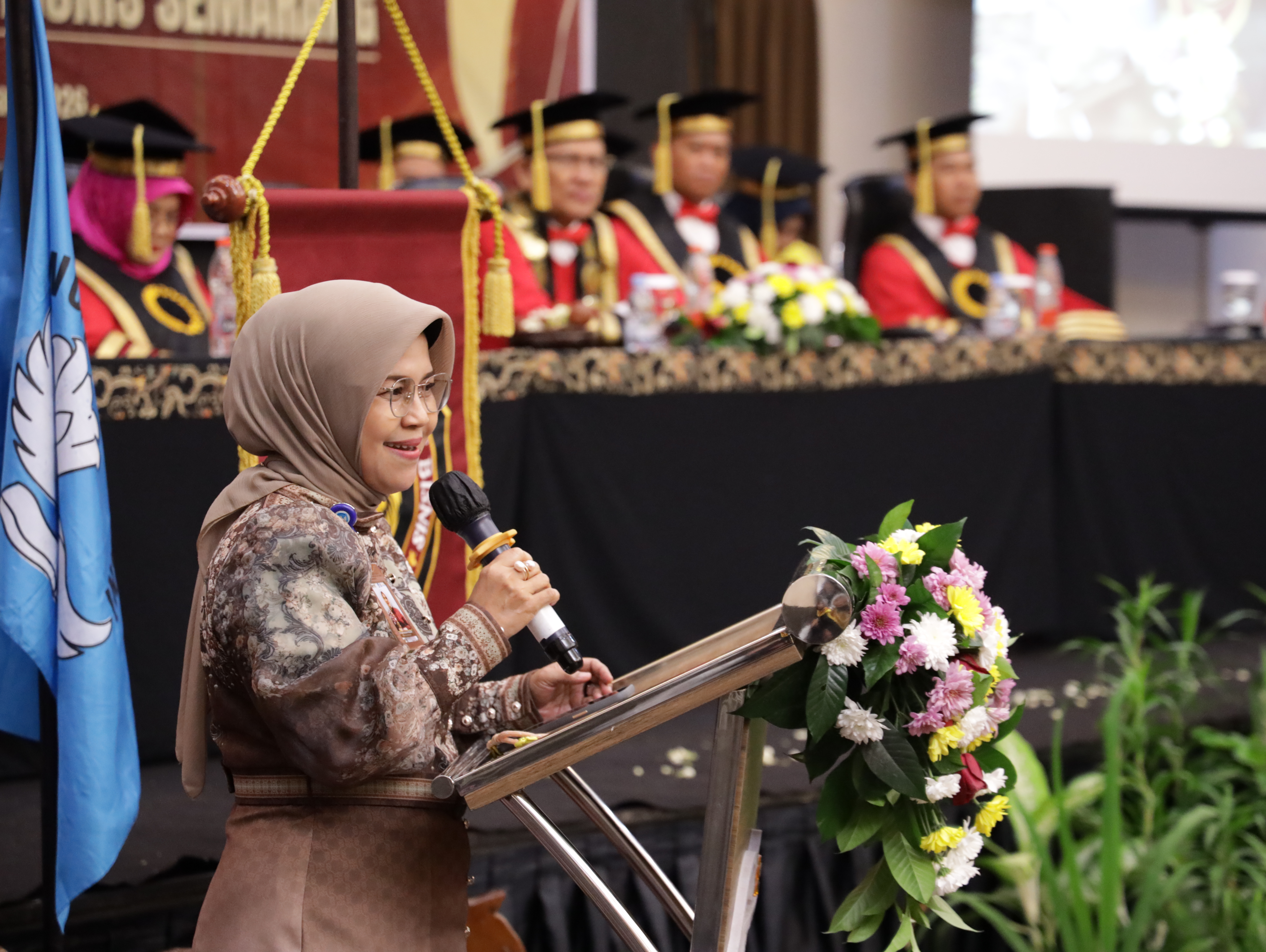 Kepala LLDIKTI Wilayah VI, Prof. Dr. Ir. Aisyah Endah Palupi, M.Pd., dalam sambutannya menegaskan bahwa lulusan perguruan tinggi swasta harus memiliki kompetensi akademik yang kuat, karakter yang baik, serta kepekaan terhadap kebutuhan masyarakat. Perguruan tinggi, menurutnya, memiliki peran strategis dalam membentuk sumber daya manusia yang tidak hanya siap kerja, tetapi juga siap berkontribusi bagi pembangunan daerah.