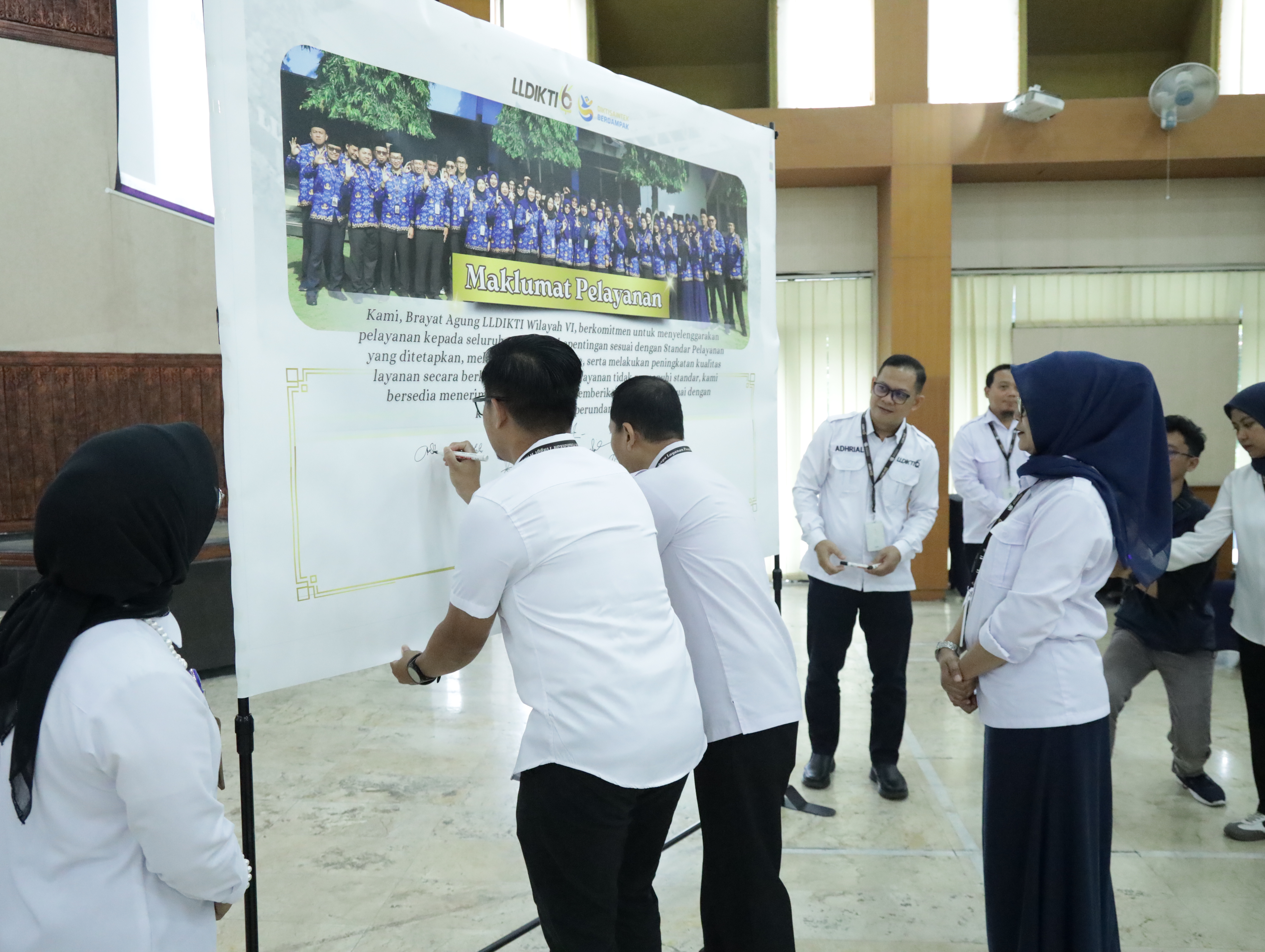 Penandatanganan Pakta Integritas dilakukan sebagai bentuk komitmen pimpinan dan jajaran LLDIKTI Wilayah VI dalam mendukung pembangunan Zona Integritas, khususnya pencegahan praktik korupsi dan gratifikasi, serta penguatan nilai profesionalitas dan tanggung jawab dalam pelaksanaan tugas. Sementara itu, penandatanganan Maklumat Pelayanan dilakukan oleh seluruh pegawai LLDIKTI Wilayah VI sebagai pernyataan kesanggupan bersama dalam memberikan pelayanan yang prima, transparan, dan berorientasi pada kepuasan pemangku kepentingan.