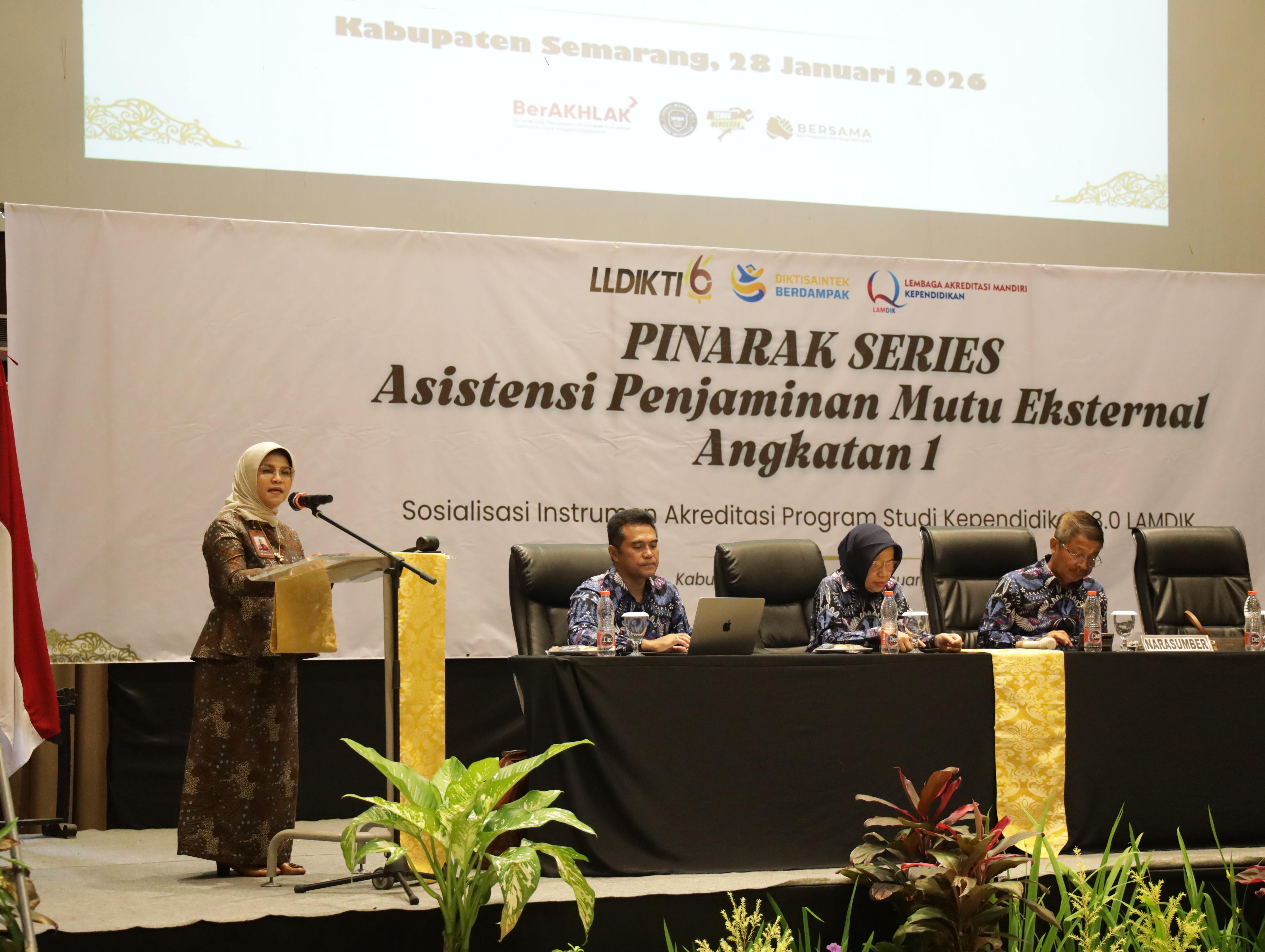 Semarang – Lembaga Layanan Pendidikan Tinggi (LLDIKTI) Wilayah VI Jawa Tengah menyelenggarakan kegiatan PINARAK SERIES: Asistensi Penjaminan Mutu Eksternal Angkatan 1 (Sosialisasi Instrumen Akreditasi Program Studi Kependidikan 3.0 LAMDIK) pada Rabu, 28 Januari 2026, bertempat di The Wujil Resort & Conventions, Kabupaten Semarang. Kegiatan ini diikuti oleh sejumlah 160 peserta yang terdiri dari unsur UPPS, tim penjaminan mutu, serta ketua program studi kependidikan dari Perguruan Tinggi Swasta (PTS) di lingkungan LLDIKTI Wilayah VI.