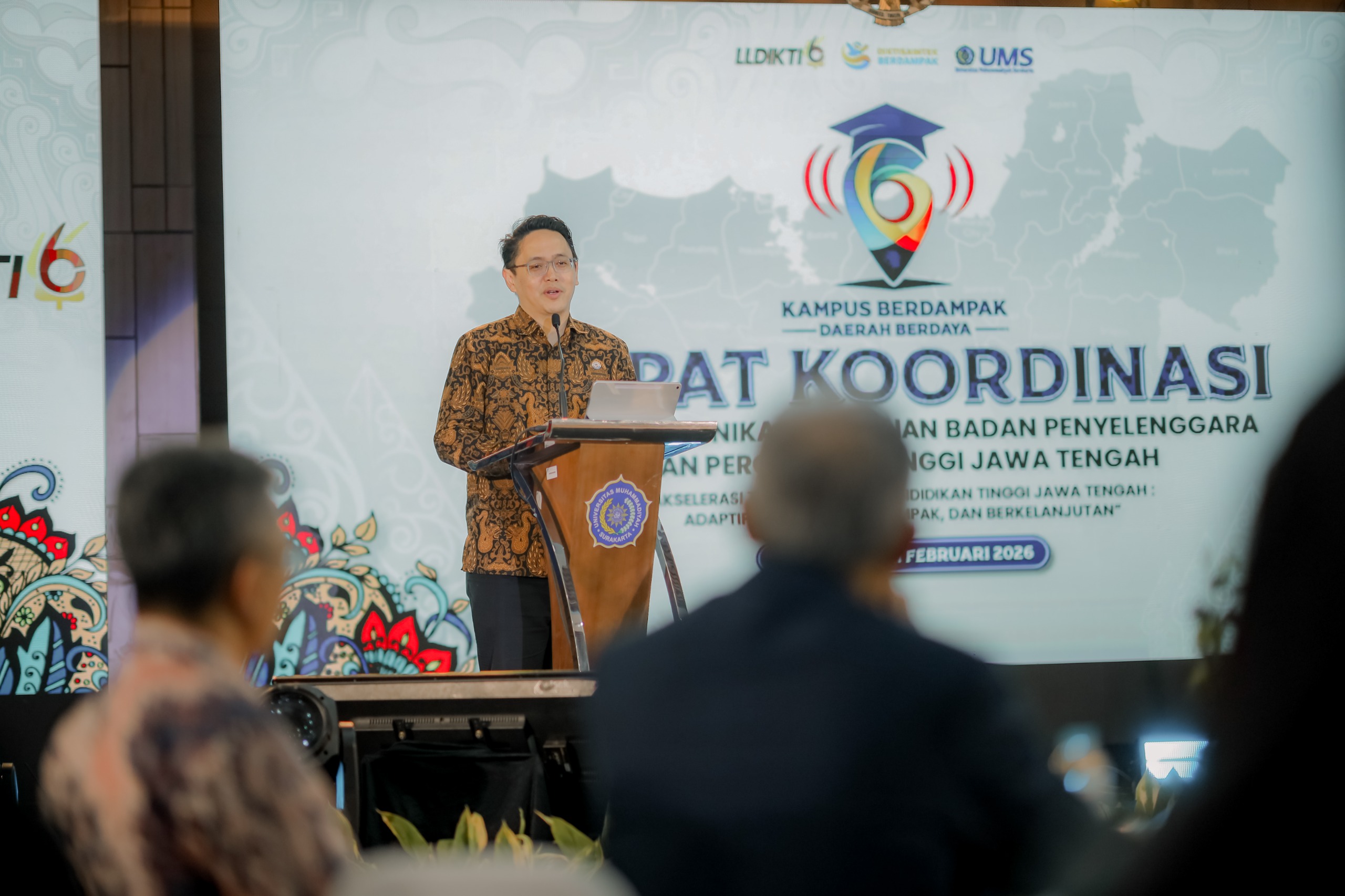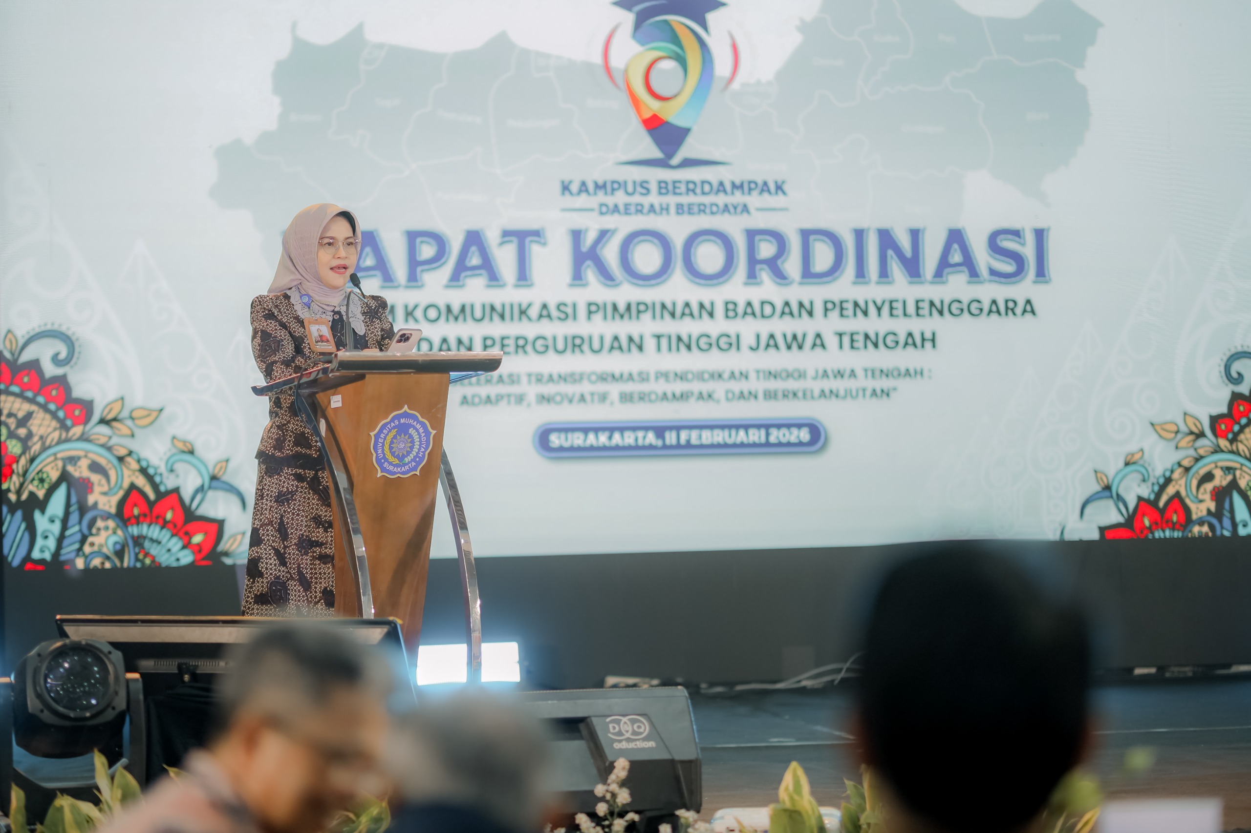 Surakarta, 11 Februari 2026 — Sebanyak ratusan pimpinan perguruan tinggi berkumpul di Universitas Muhammadiyah Surakarta (UMS) untuk menyusun arah bersama dalam upaya akselerasi transformasi pendidikan tinggi Jawa Tengah. Lembaga Layanan Pendidikan Tinggi (LLDIKTI) Wilayah VI menyelenggarakan Rapat Koordinasi Forum Komunikasi Pimpinan dan Badan Penyelenggara Perguruan Tinggi se-Jawa Tengah dengan tema “Akselerasi Transformasi Pendidikan Tinggi Jawa Tengah: Adaptif, Inovatif, Berdampak, dan Berkelanjutan.”