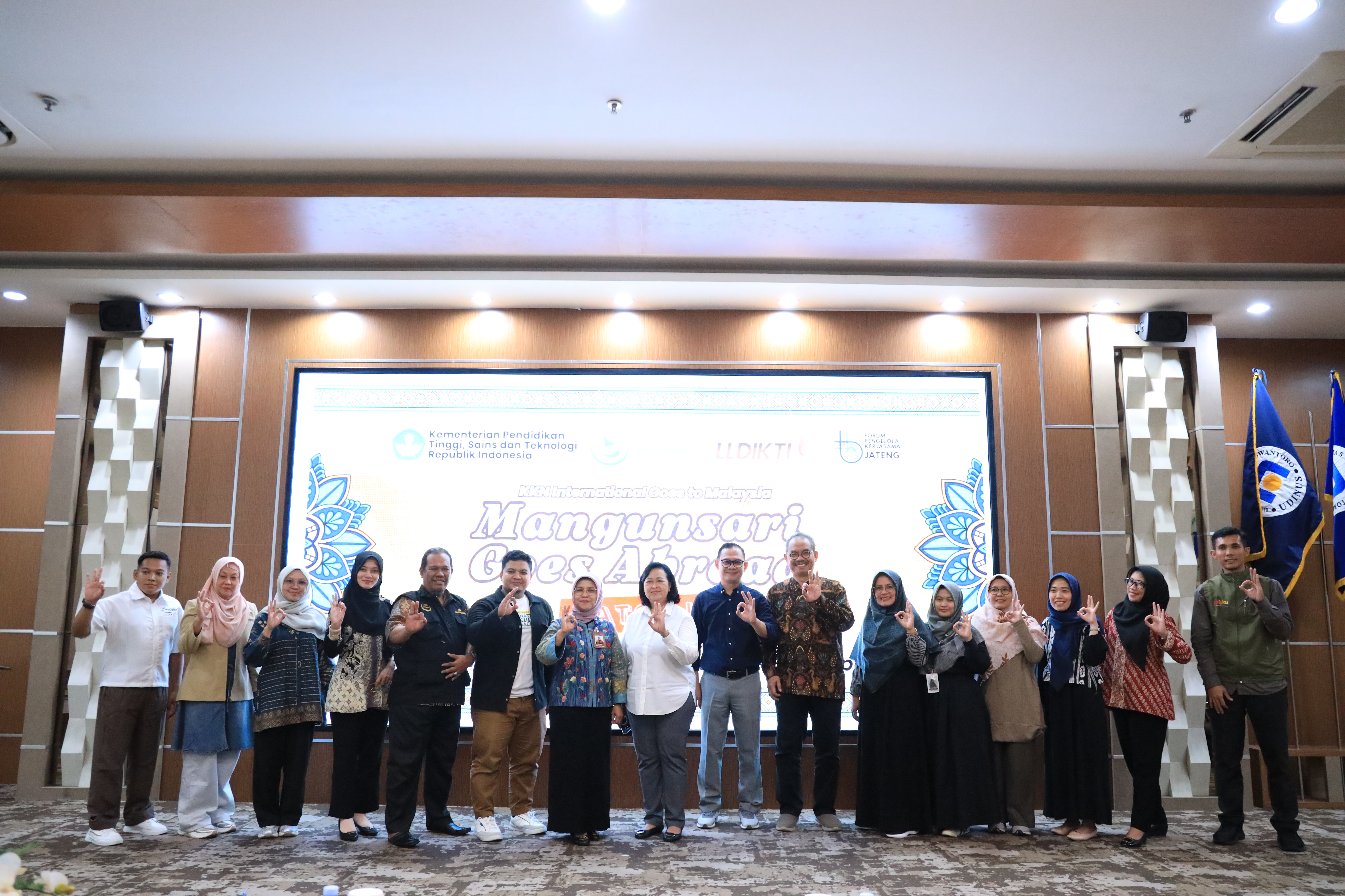 Semarang, 31 Maret 2026 – Lembaga Layanan Pendidikan Tinggi Wilayah VI bersama Forum Kerja Sama Perguruan Tinggi Jawa Tengah secara resmi memberangkatkan peserta KKN Internasional “Mangunsari Goes Abroad” Batch I periode April 2026. Pelepasan dilaksanakan di halaman Universitas Dian Nuswantoro, Selasa (31/3), sebagai titik awal perjalanan menuju Malaysia.