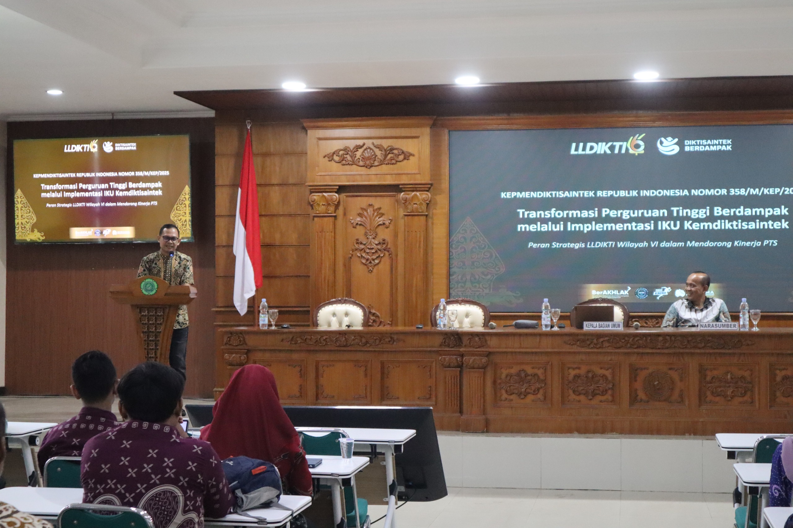 Jajaran Tim Kerja LLDIKTI Wilayah VI hadir membersamai diskusi dan belajar bareng IKU perguruan tinggi. Dalam sambutannya, Kepala Bagian Umum LLDIKTI Wilayah VI Adhrial Refaddin, S.IP, M.PP., menegaskan bahwa IKU bukanlah alat untuk mempersulit perguruan tinggi, melainkan instrumen untuk memetakan dan meningkatkan kinerja perguruan tinggi secara berkelanjutan.