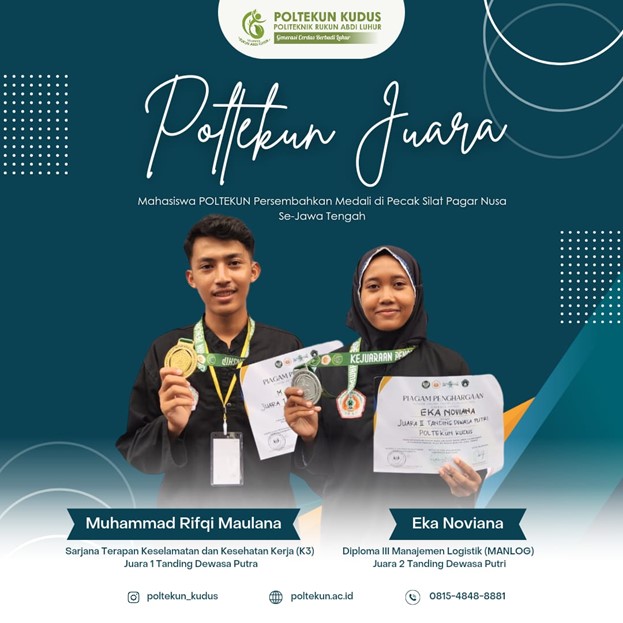 KUDUS – Mahasiswa Politeknik Rukun Abdi Luhur (POLTEKUN) yang tergabung dalam UKM Pencak Silat NU Pagar Nusa meraih prestasi di ajang Pencak Silat NU Pagar Nusa Se-Jawa Tengah pada 24 – 26 Juni 2023 di Purwokerto. Perwakilan mahasiswa tersebut berhasil meraih juara 1 pada pertandingan dewasa putra dan juara 2 pada pertandingan dewasa putri.