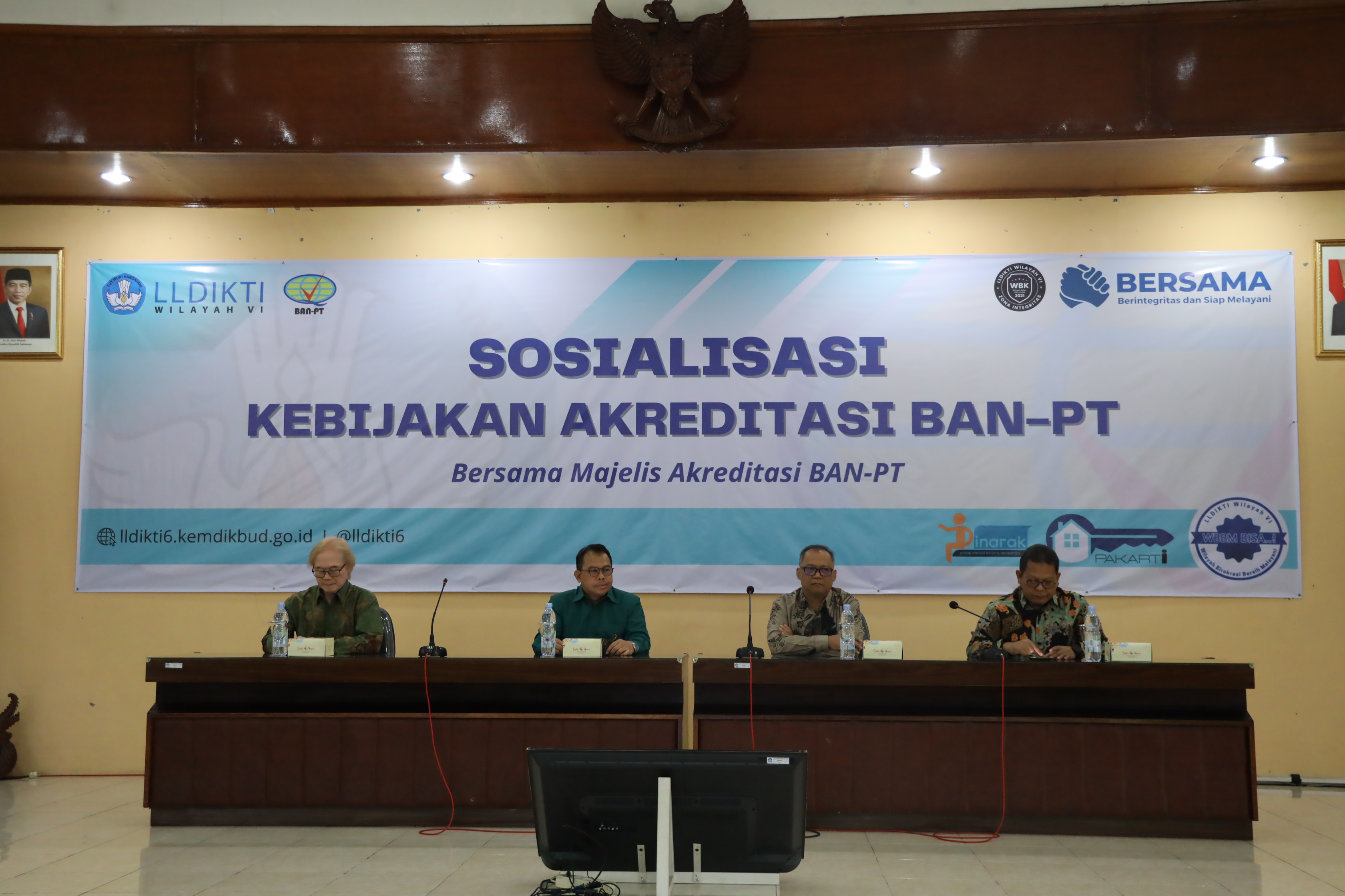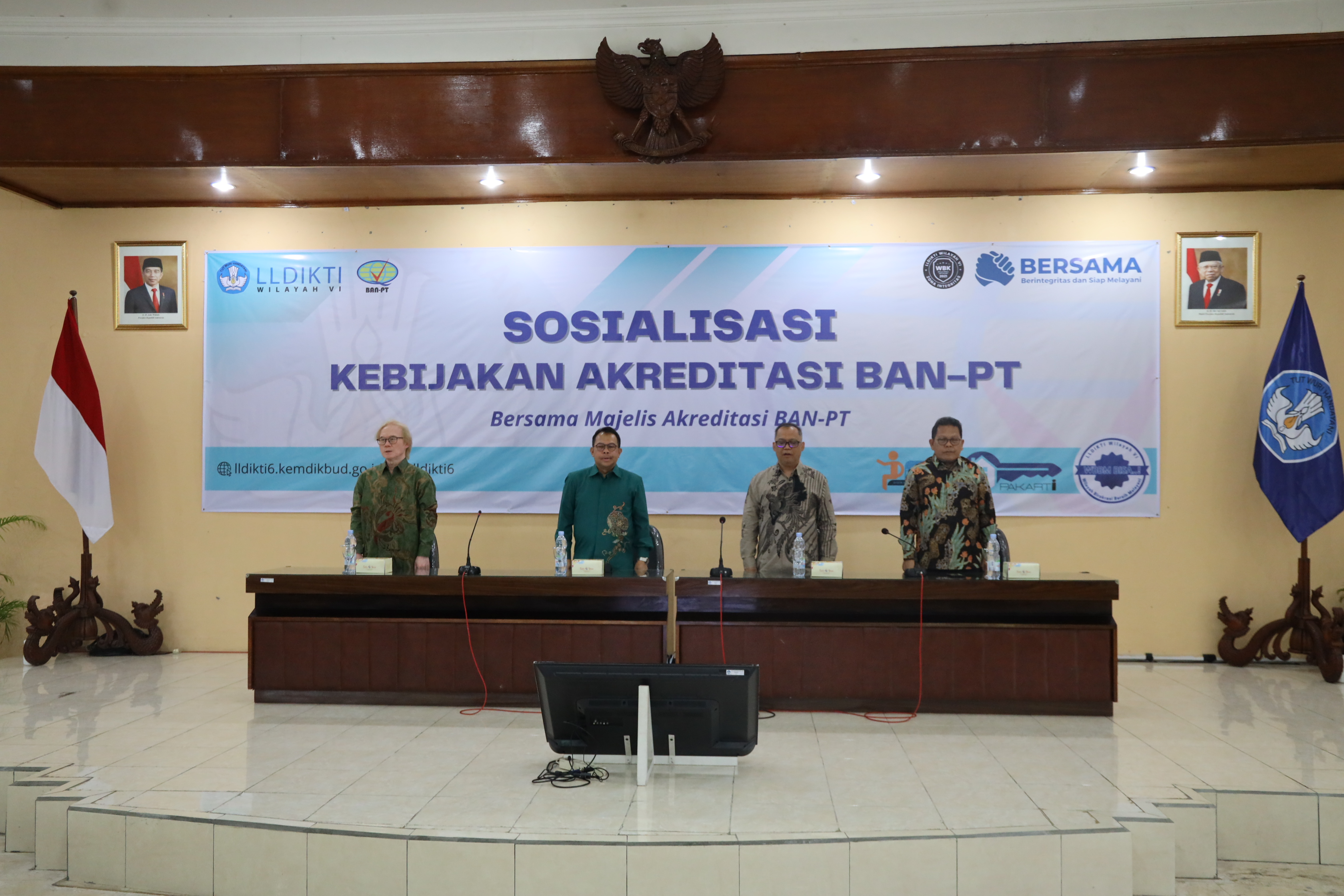 Lembaga Layanan Pendidikan Tinggi (LLDIKTI) Wilayah VI bekerjasama dengan Badan Akreditasi Nasional Perguruan Tinggi (BAN PT) sukses menyelenggarakan acara Sosialisasi Akreditasi BAN-PT yang berlangsung pada hari Jumat tanggal 6 Oktober tahun 2023. Kegiatan yang bertujuan untuk menjaring saran, masukan, maupun hambatan yang dialami oleh Perguruan Tinggi dan Program Studi dalam pelaksanaan akreditasi, baik akreditasi oleh BAN-PT maupun oleh Lembaga Akreditasi Mandiri (LAM) tersebut berlangsung di Gedung A Kantor LLDIKTI Wilayah VI, Semarang.